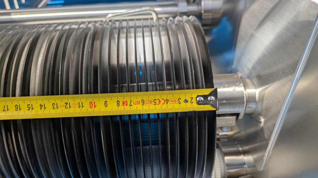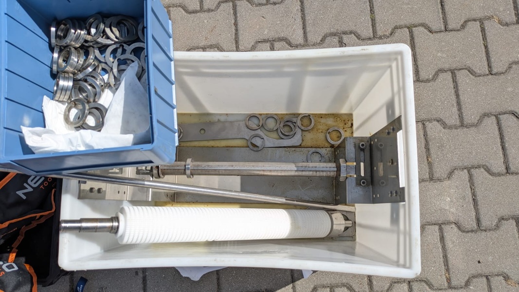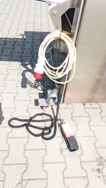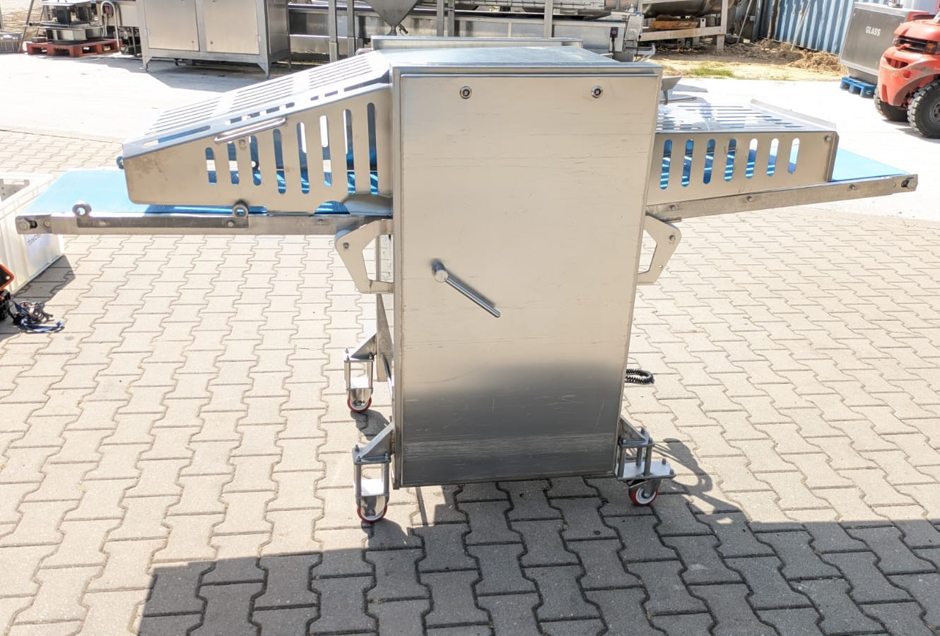 Nock mobile strip cutter, type: CB495/5KK, 400 V, 3 Ph, 50 Hz, 10 A, 1.1 kW, plastic belt, belt width: 430 mm, distance between knives: 8 mm, total dimensions: 2500 mm x 900 mm x 1300 mm.