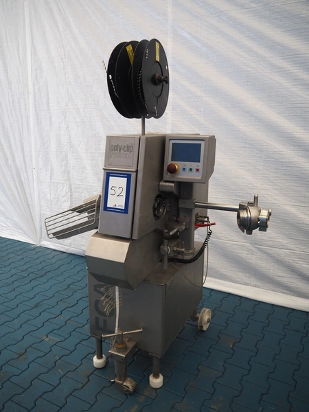 Poly-clip System GmbH & Co. KG mobile clipper, type: FCA 3442, number: 478, year of construction: 2012, 400 V, 3 Ph, 50/60 Hz, 4 A, 5/7 bar, 3.8 kW, weight: 370 kg, dimensions: 1200 mm x 1150 mm x 1950 mm.