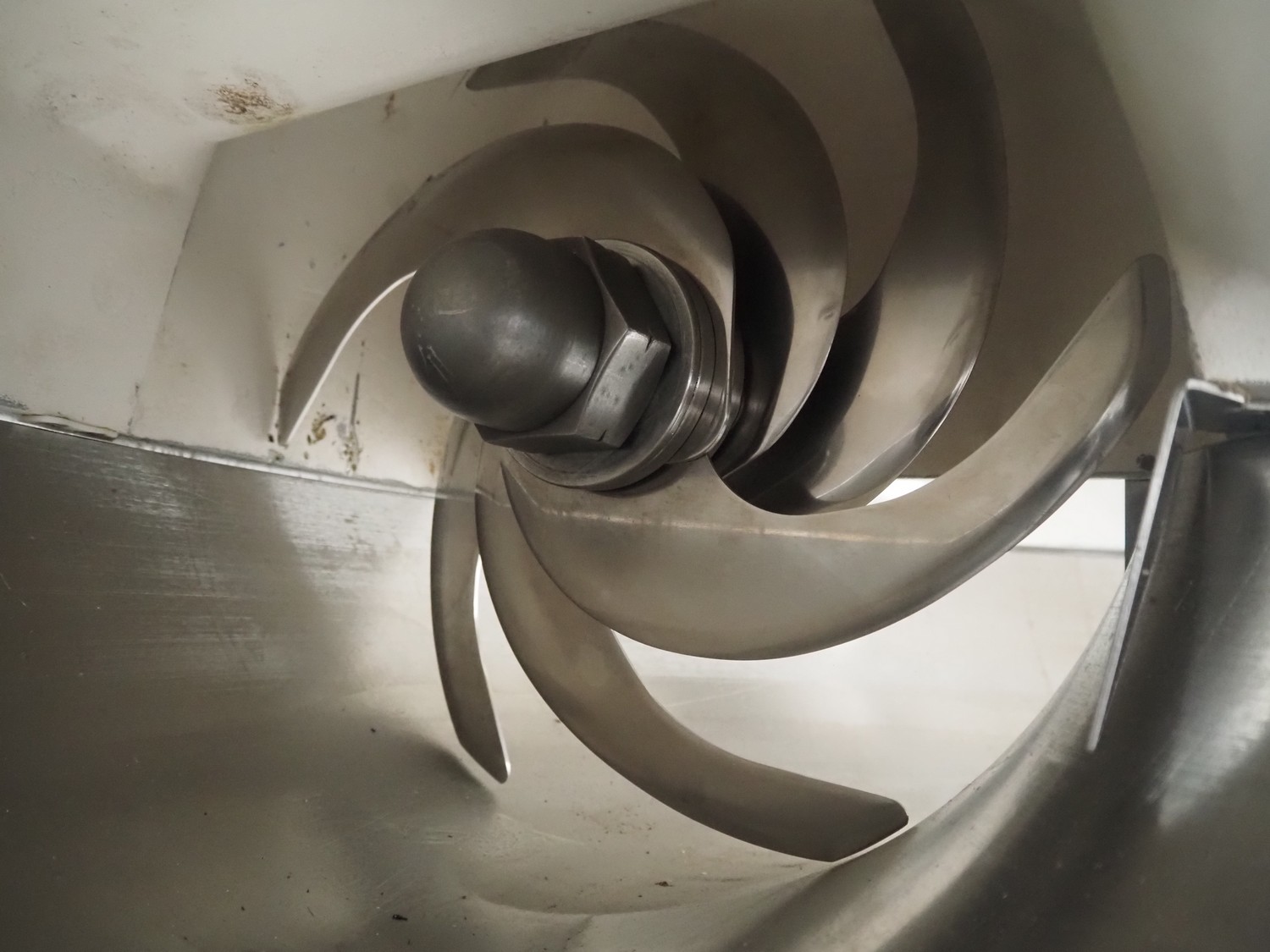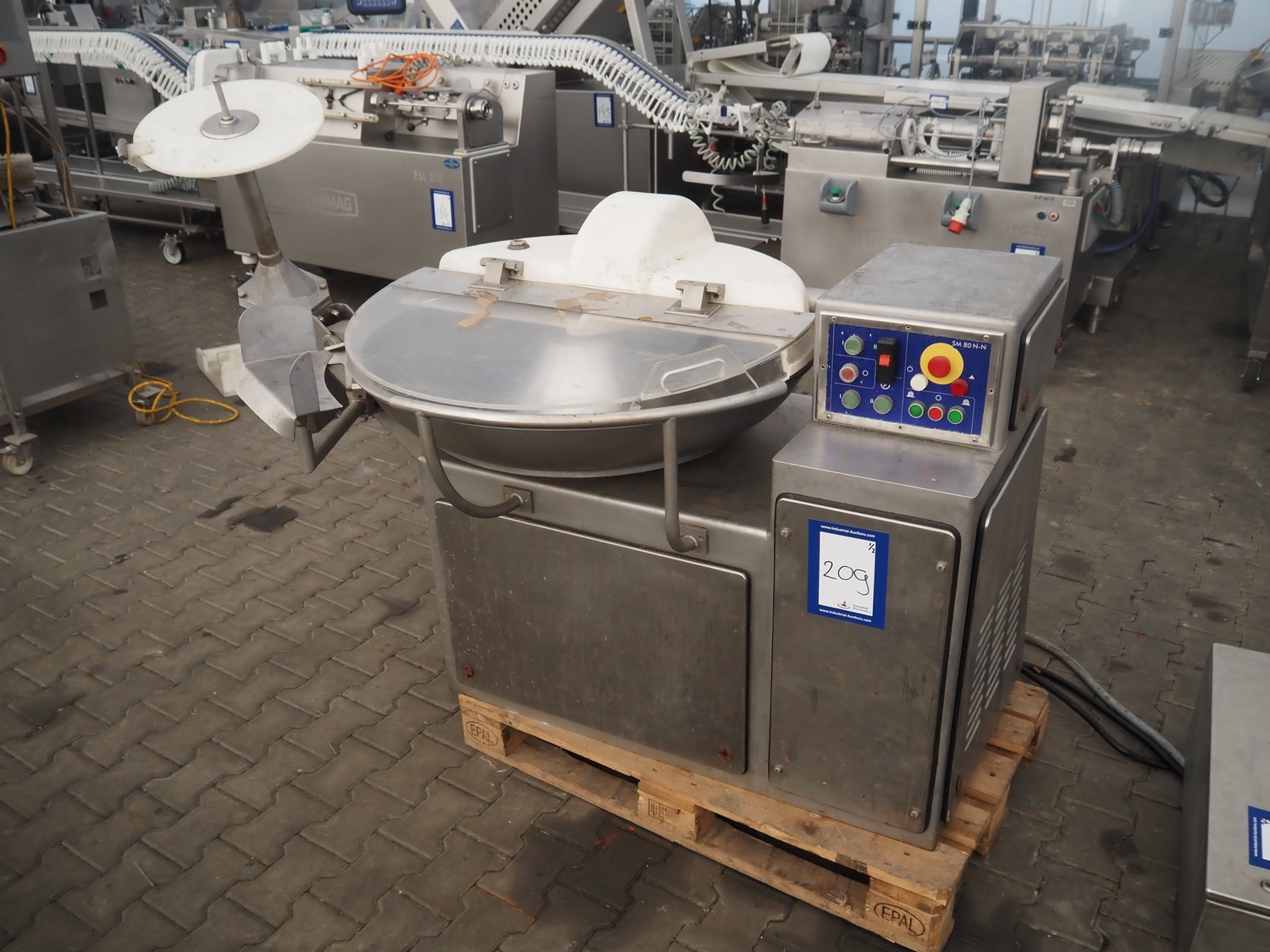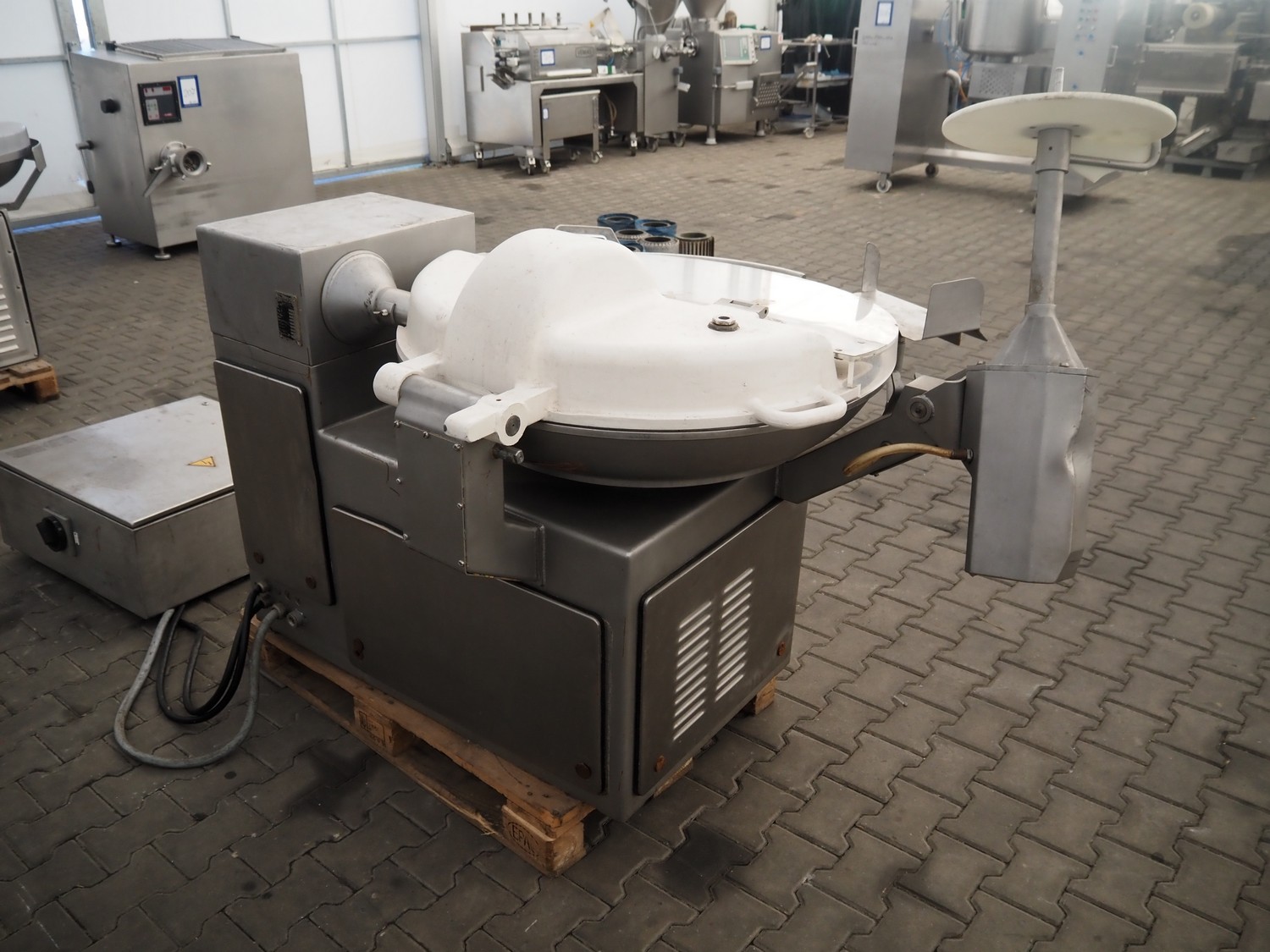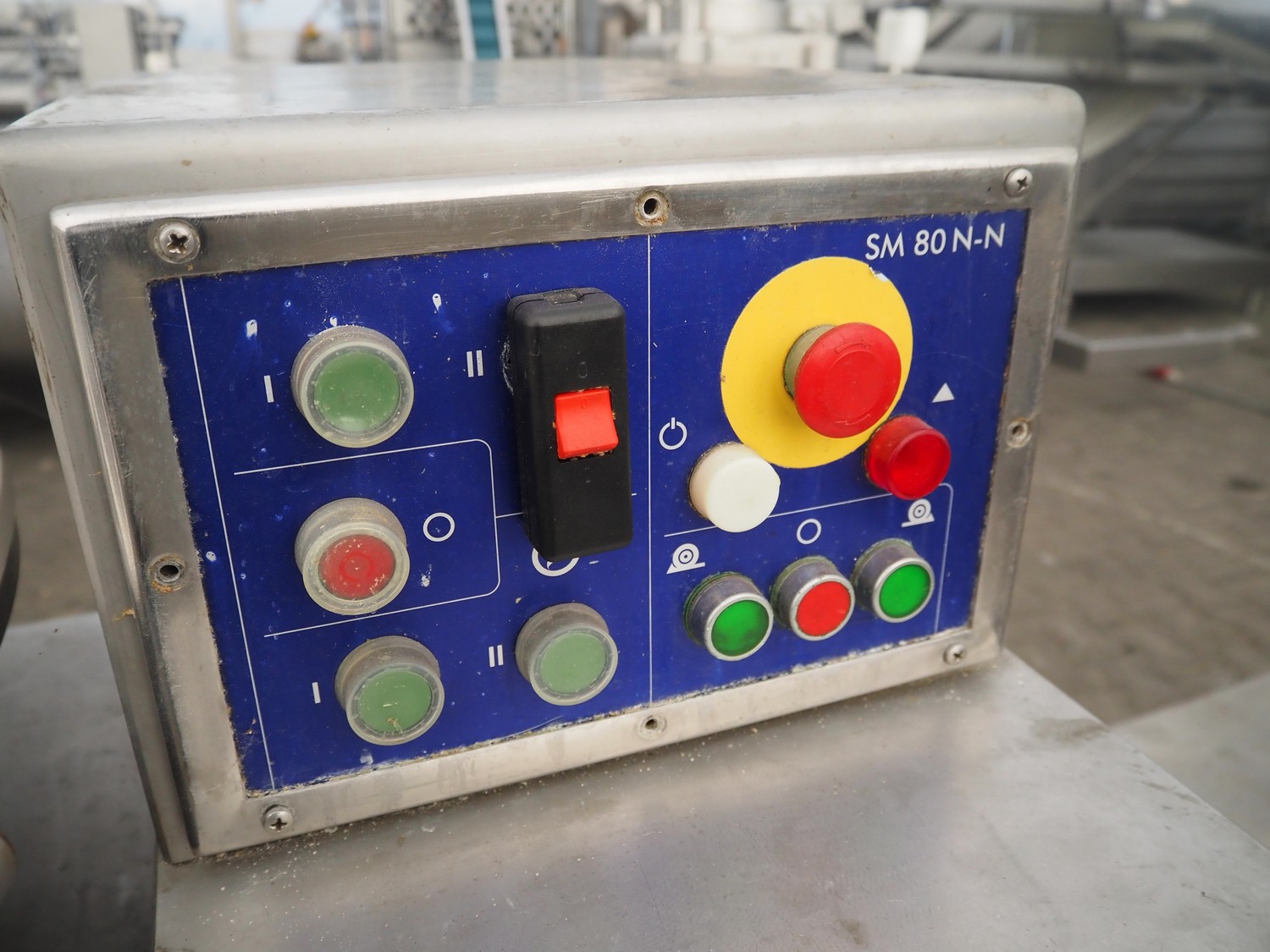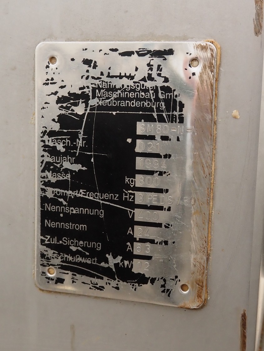Nematec cutter with ejector, type: SM80-N-N, number: 021, year of construction: 1994, 400 V, 3 Ph, 50 Hz, 24/63 A, 12 kW, s/s bowl, volume: 80 liter, dimensions: 1770 mm x 1300 mm x 1520 mm, dimensions swithc cabinet: 800 mm x 800 mm x 300 mm.