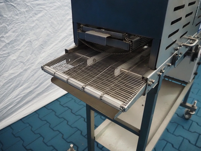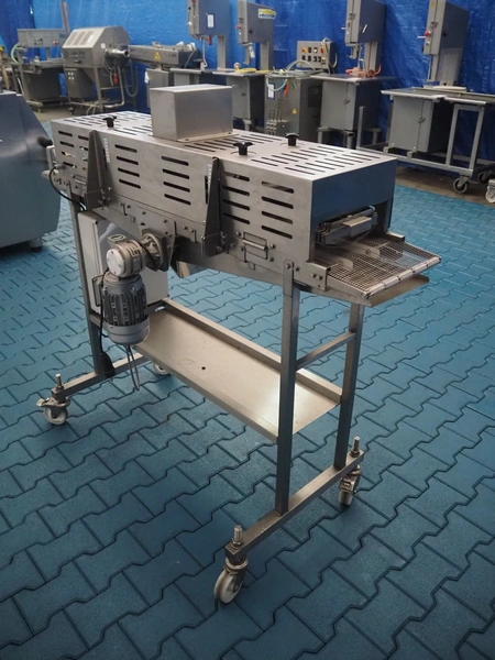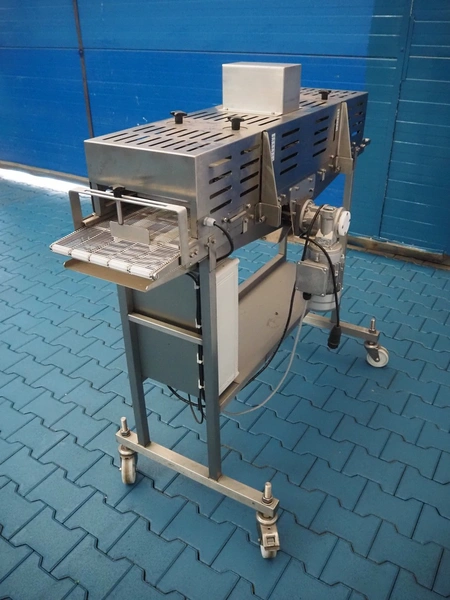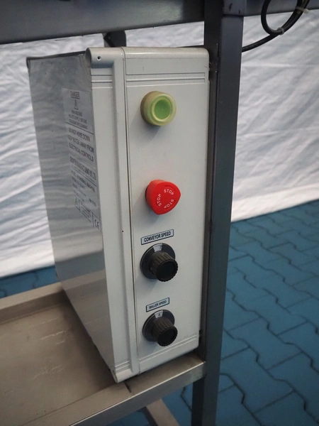 Deighton Manufacturing UK LTD mobile meatball forming machine, model: ECONOBALL MACHINE, serial number: EB 18/08/073, 220/240 V, 1 Ph, 50/60 Hz, 0.31 kW, s/s mesh belt, belt width: 280 mm, total dimensions: 1550 mm x 640 mm x 1170 mm.