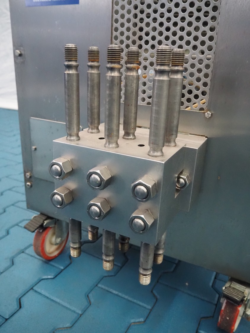 GEA Niro Soavi S.p.A. homogenizer, type: 2006 L, serial number: 3812, year of construction: 1999, maximum pressure: 150 Mpa, rated flow: 40 dm³ per hour, dimensions: 880 mm x 670 mm x 1370 mm.