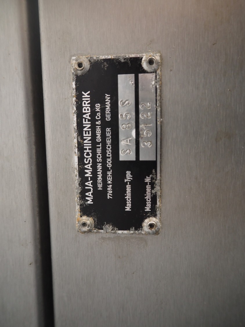 Maja flake-ice machine, type: SA 85 S, number: 35122, year of construction: 2005, 230 V, 50 Hz, 3.9 A, 0.53 kW, refrigerant: R 404 A, capacity: 85 kg per 24 hours, dimensions: 700 mm x 700 mm x 1350 mm.