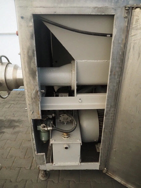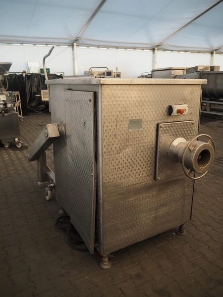 Grinder with lifter for 200 liter meat bins, diameter plate: 160 mm, total dimensions: 2350 mm x 1300 mm x 1860 mm.