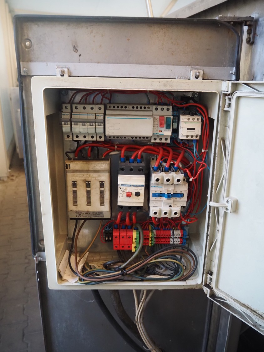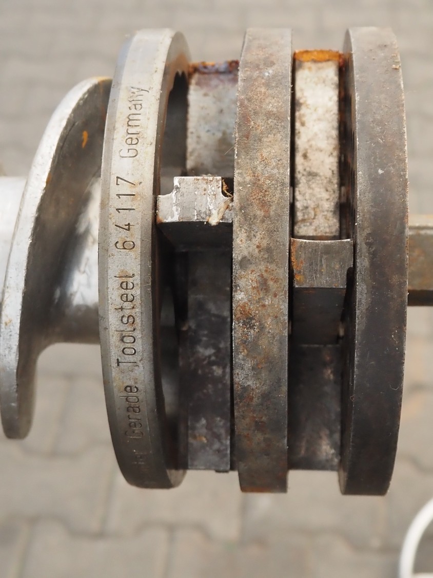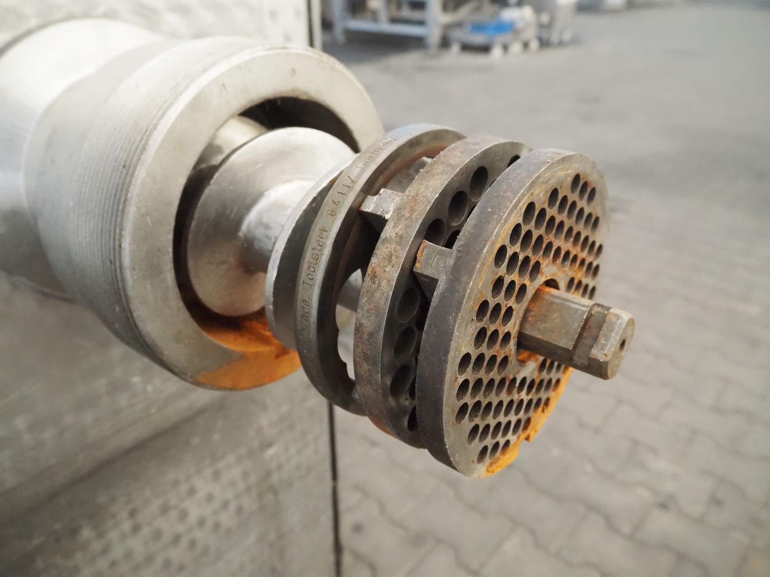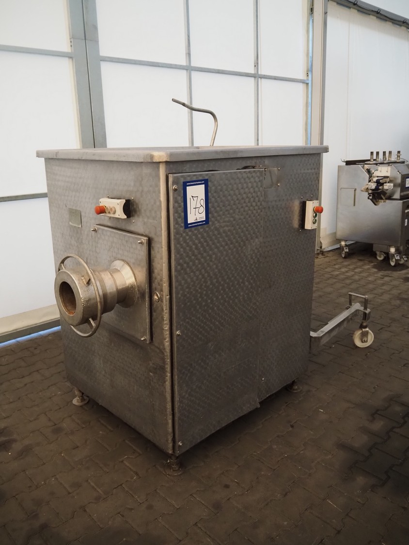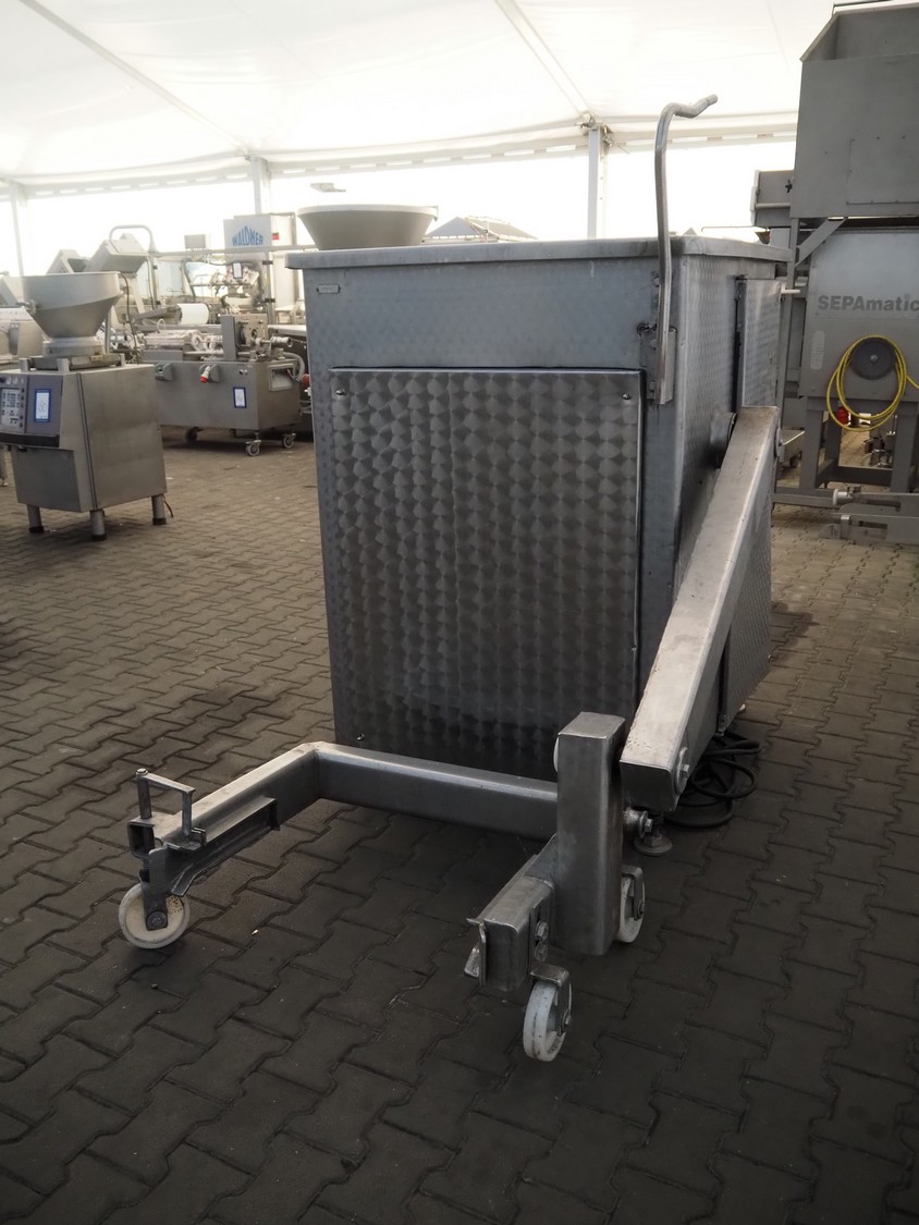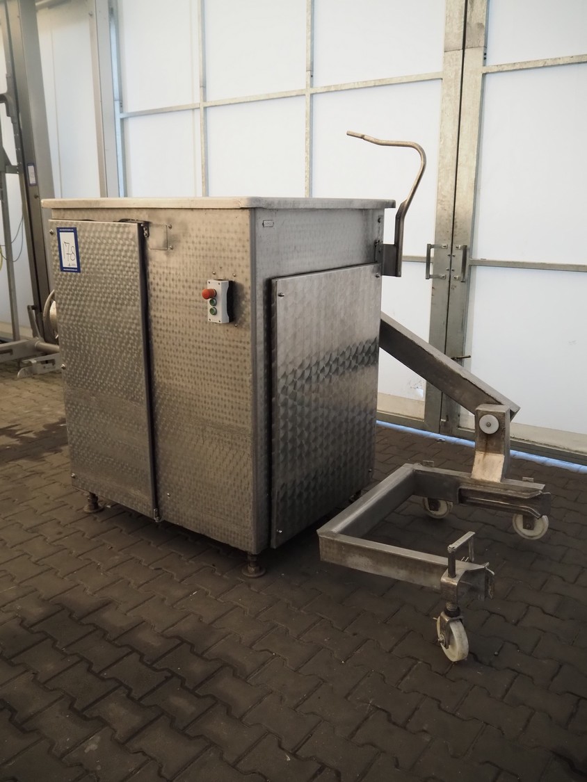 Grinder with lifter for 200 liter meat bins, diameter plate: 160 mm, total dimensions: 2350 mm x 1300 mm x 1860 mm.