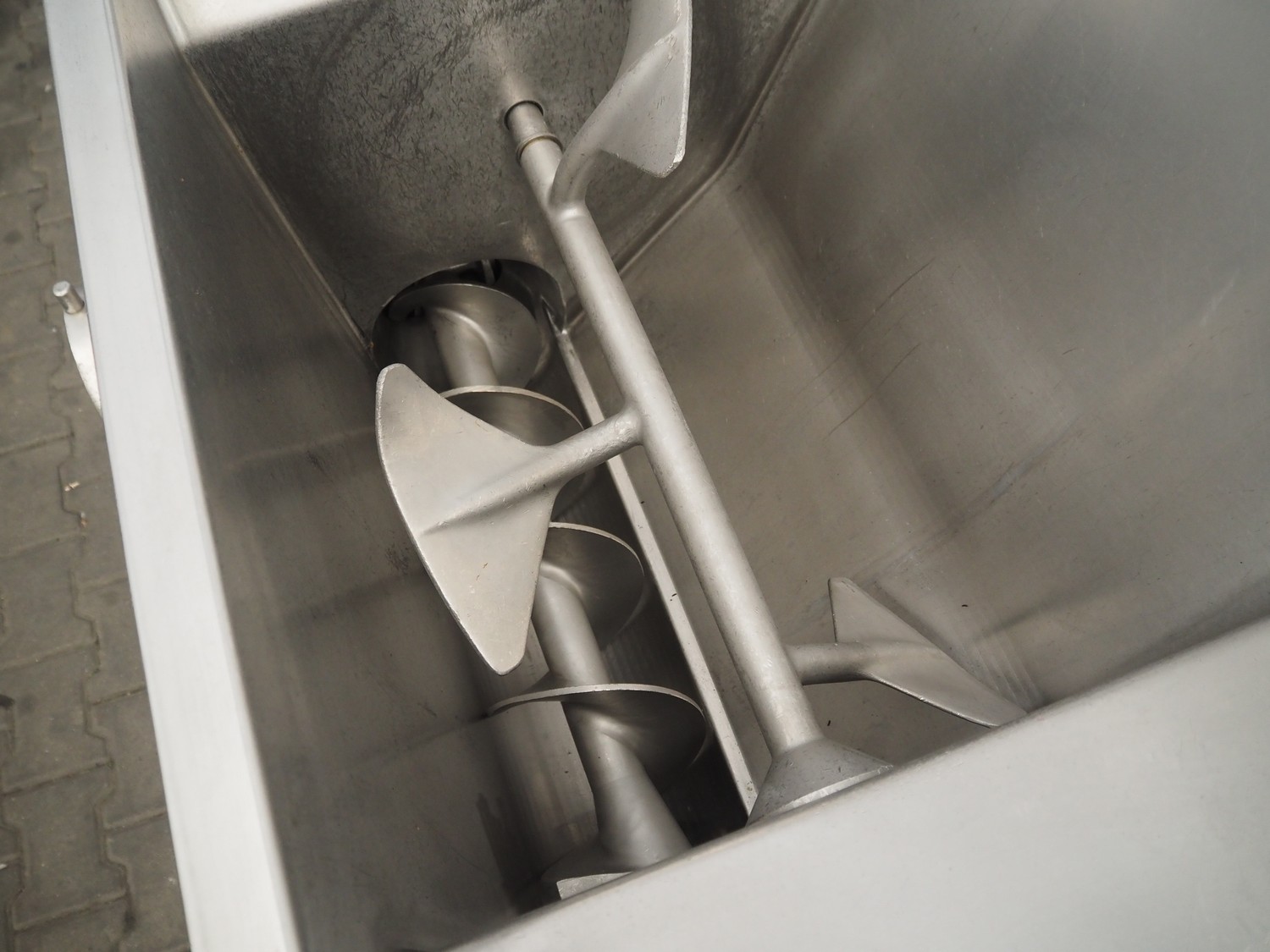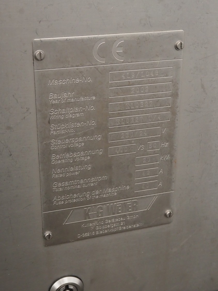 K+G Wetter paddle mixer-grinder, machine number: 419/1048, year of construction: 2002, 400 V, 3 Ph, 50 Hz, 42/50 A, 20 kW, diameter plate: 130 mm, inside dimensions: 600 mm x 530 mm x 550 mm, total dimensions: 1400 mm x 930 mm x 1330 mm.