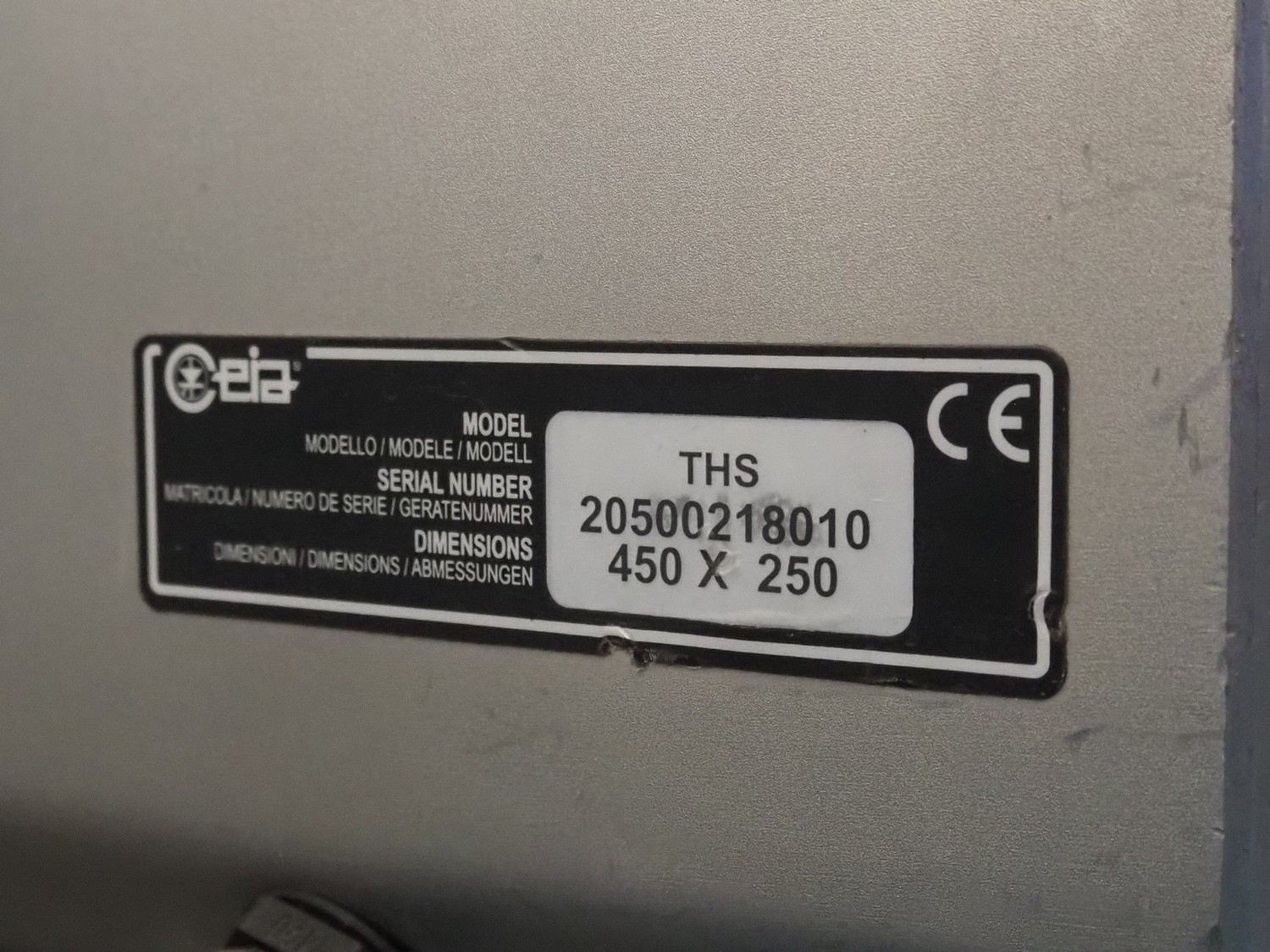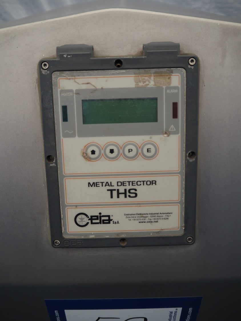 Ceia metal detector, model: THS, serial number: 20500218010, plastic belt, belt width: 400 mm, clearance: 450 mm x 210 mm, total dimensions: 1240 mm x 1000 mm x 1200 mm.