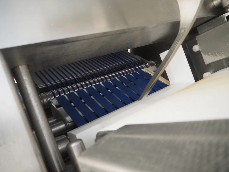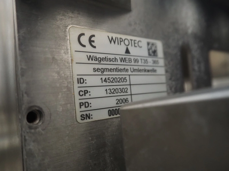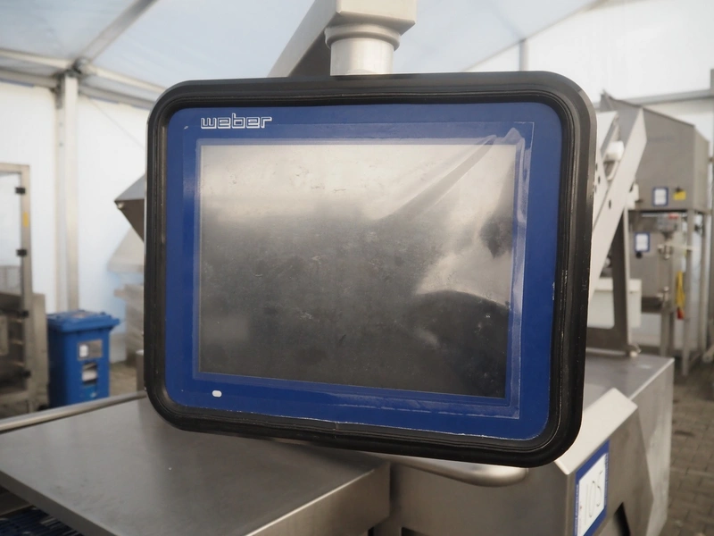 Weber slicer line consisting of: Weber slicer, type slicer: CCS 602, number: 835, year of construction: 08/2005, 400 V, 50 Hz, 10 kW, plastic belt, belt width: 400 mm, Wipotec checkweigher, type: Web 99 Waage T30B-R-CAN, serial number: 0001018, year of construction: 2005, maximum weight: 3000 gram, plastic string belt, belt width: 400 mm, Weber outfeed belt, type outfeed belt: CCR and CCE, number: 6835, year of construction: 08/2005, total dimensions slicer: 2500 mm x 1300 mm x 2200 mm, total dimensions checkweigher: 350 mm x 900 mm x 1150 mm and total dimensions outfeed belt: 3500 mm x 1000 mm x 1450 mm. Including 3 extra knives (1 for cheese and 2 normal)