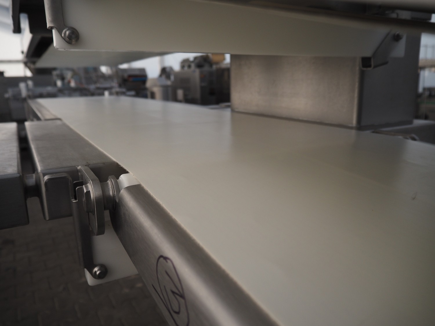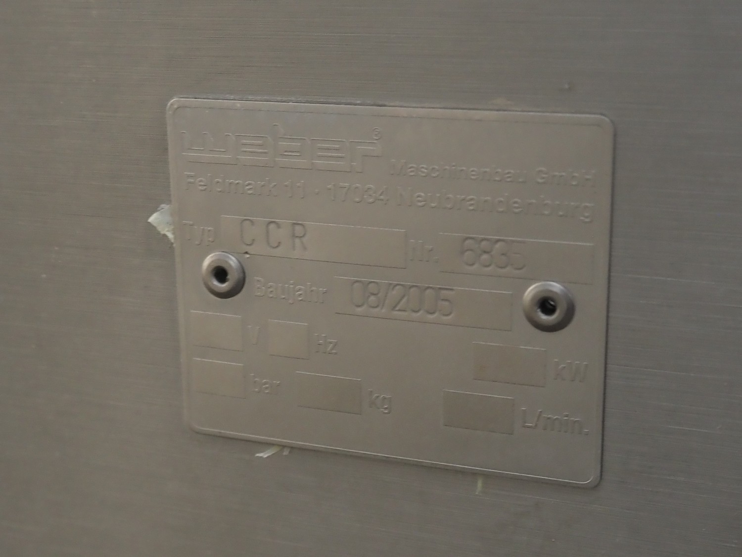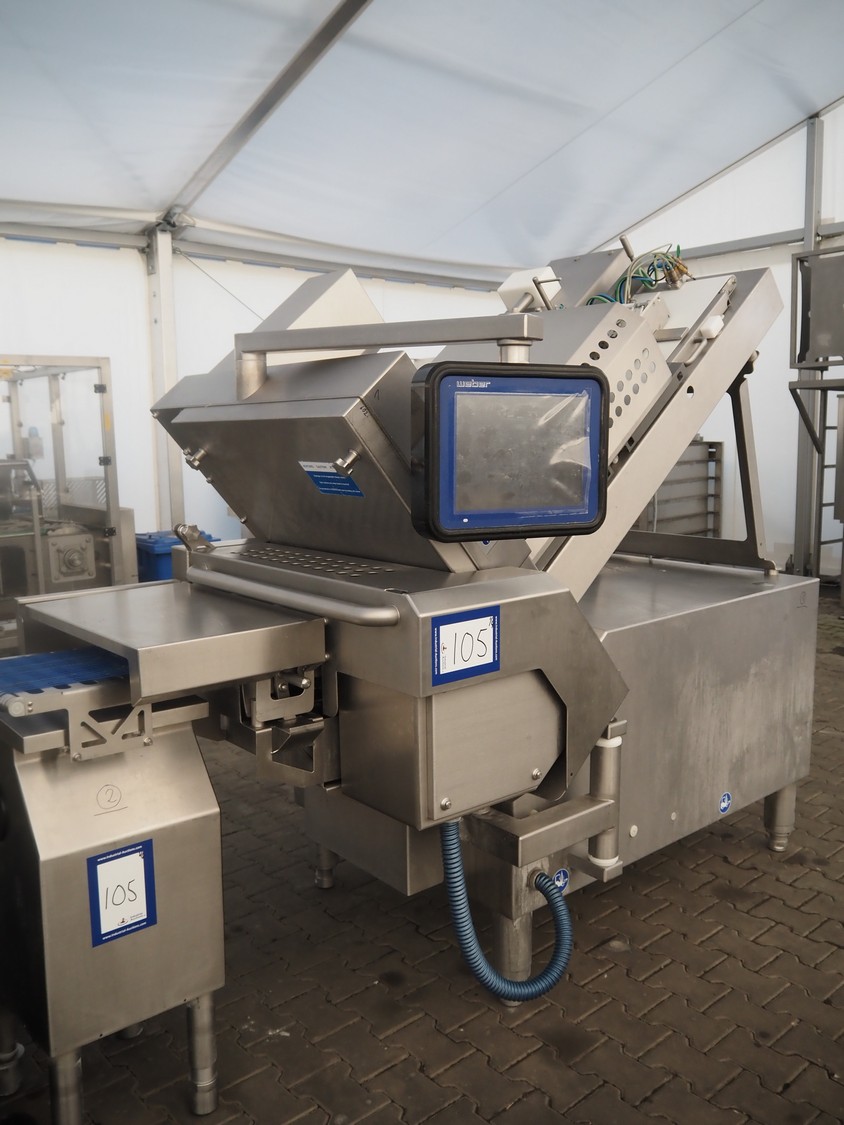 Weber slicer line consisting of: Weber slicer, type slicer: CCS 602, number: 835, year of construction: 08/2005, 400 V, 50 Hz, 10 kW, plastic belt, belt width: 400 mm, Wipotec checkweigher, type: Web 99 Waage T30B-R-CAN, serial number: 0001018, year of construction: 2005, maximum weight: 3000 gram, plastic string belt, belt width: 400 mm, Weber outfeed belt, type outfeed belt: CCR and CCE, number: 6835, year of construction: 08/2005, total dimensions slicer: 2500 mm x 1300 mm x 2200 mm, total dimensions checkweigher: 350 mm x 900 mm x 1150 mm and total dimensions outfeed belt: 3500 mm x 1000 mm x 1450 mm. Including 3 extra knives (1 for cheese and 2 normal)