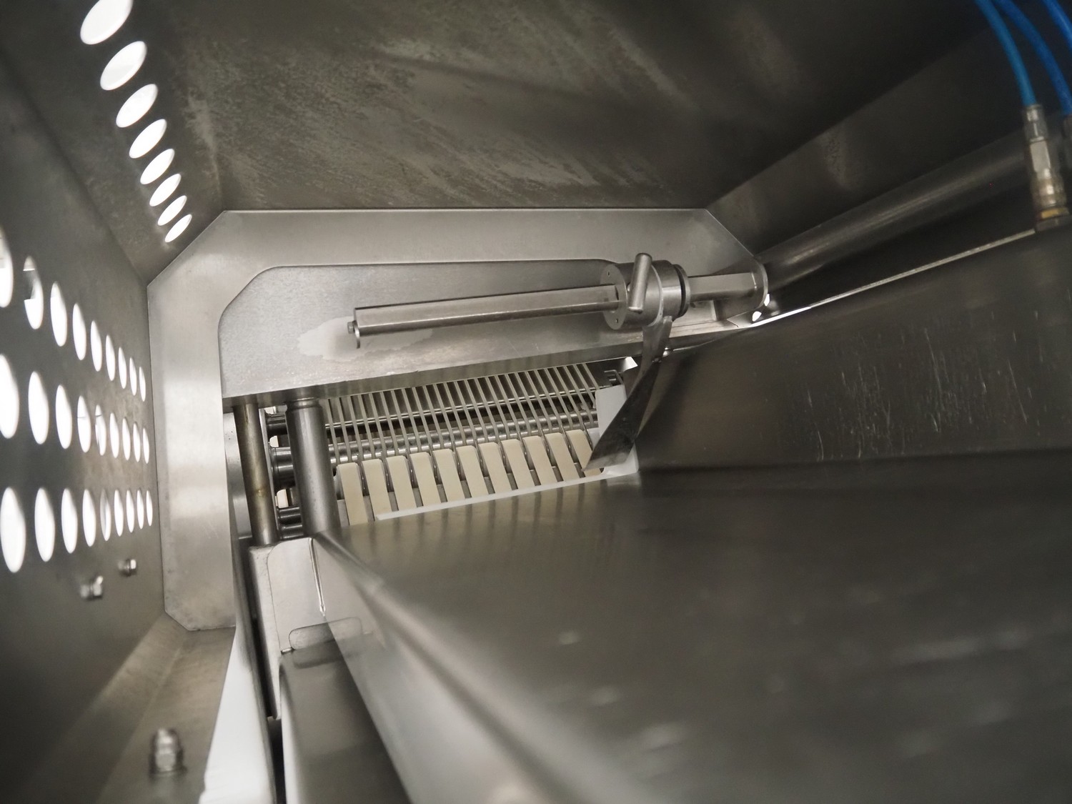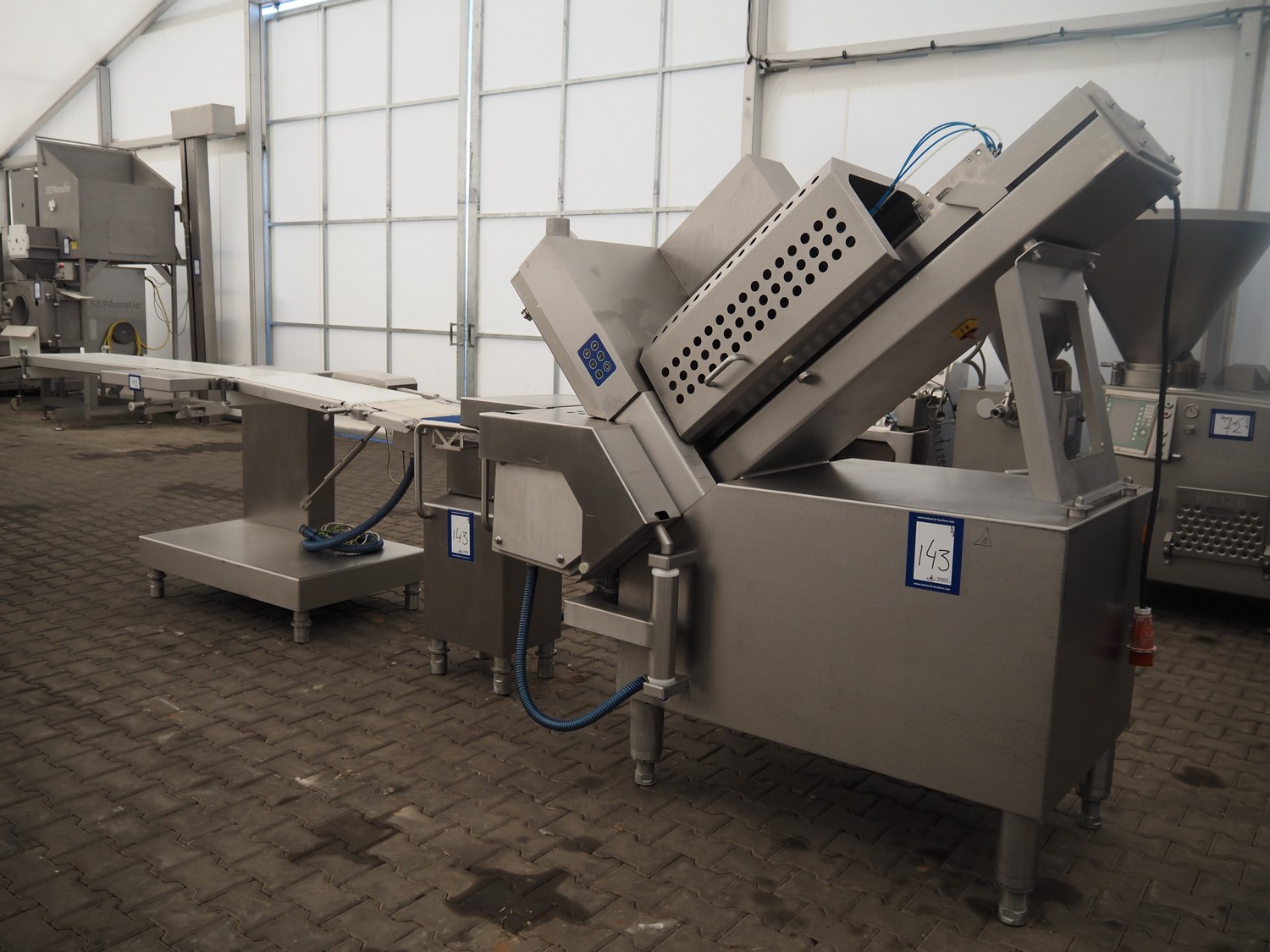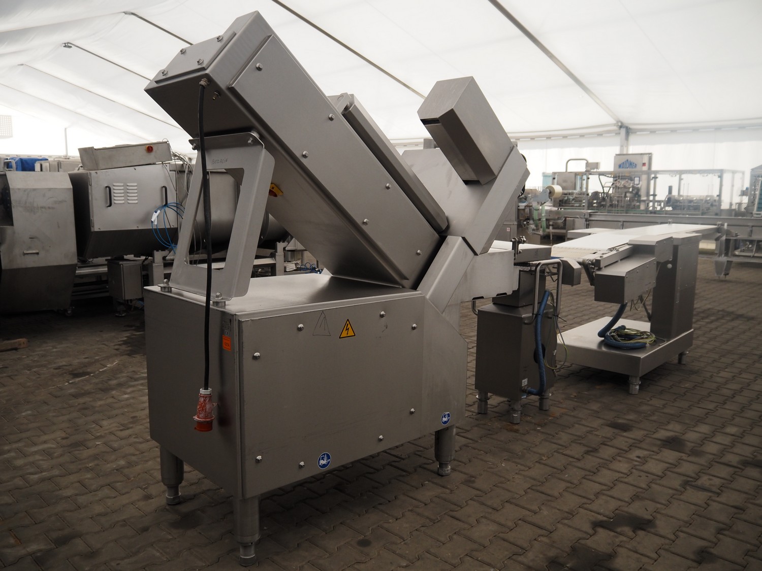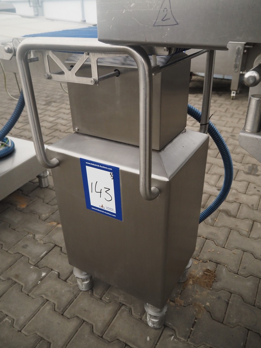 Weber slicer line, consisting of: Weber slicer, type slicer: CCS 402, number: 288, year of construction: 03 2003, 400 V, 50 Hz, 10 kW, plastic belt, belt width: 400 mm, Wipotec checkweigher, type: WEB 99 LC Waage, serial number: 0000046, year of construction: 2003, maximum weight: 1500 gram, plastic belt, belt width: 400 mm, Weber outfeed belt, type outfeed belt: CCL , number: 4288, year of construction: 03/2003, plastic belt, belt width: 400 mm, total dimensions slicer: 2400 mm x 1100 mm x 2100 mm, total dimensions checkweigher: 500 mm x 500 mm x 1100 mm and total dimensions outfeed belt: 3900 mm x 1000 mm x 1100 mm.