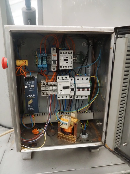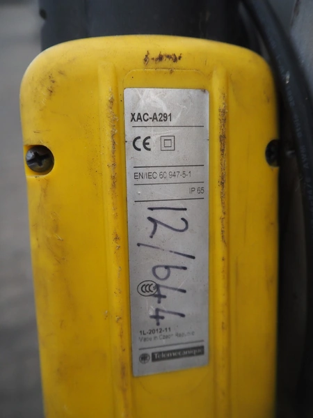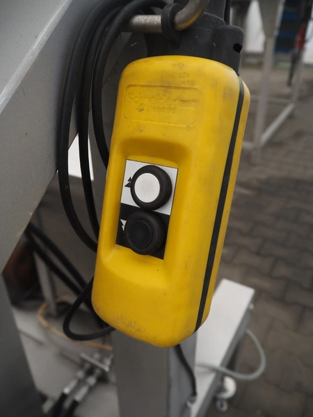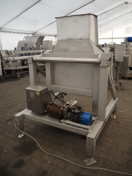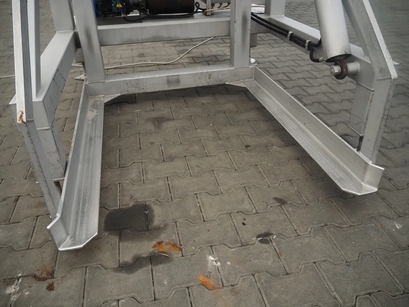 Tilting device for pallet boxes, clearance: 1200 mm x 1020 mm x 800 mm, tilting height: 1350 mm, total dimensions: 1950 mm x 1400 mm x 2000 mm.