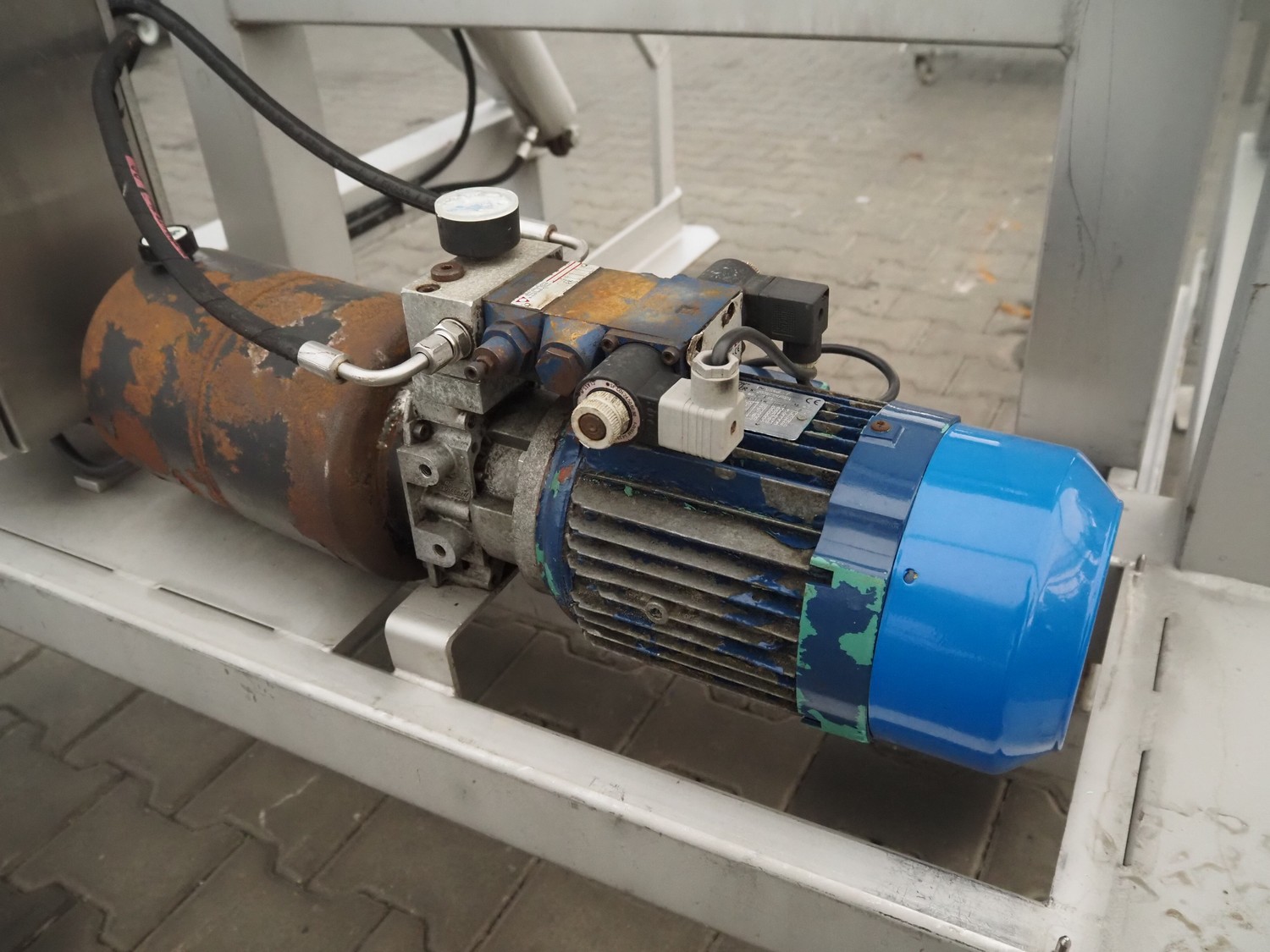 Tilting device for pallet boxes, clearance: 1200 mm x 1020 mm x 800 mm, tilting height: 1350 mm, total dimensions: 1950 mm x 1400 mm x 2000 mm.