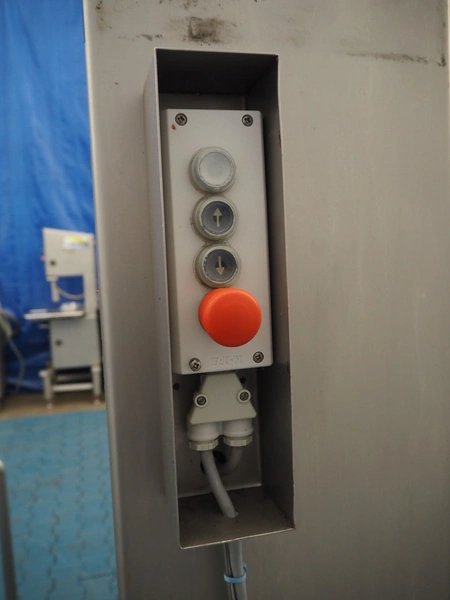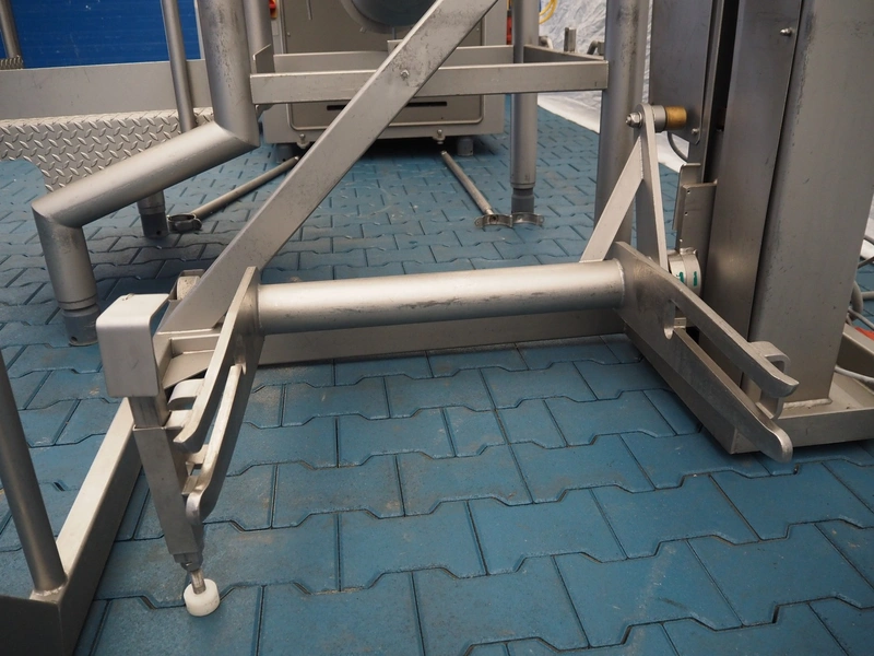 Bonner mobile lifter for 200 liter meat bins, machine number: 03 12 312 007, elevating height: 1830 mm, total dimensions: 1400 mm x 1500 mm x 2700 mm.
