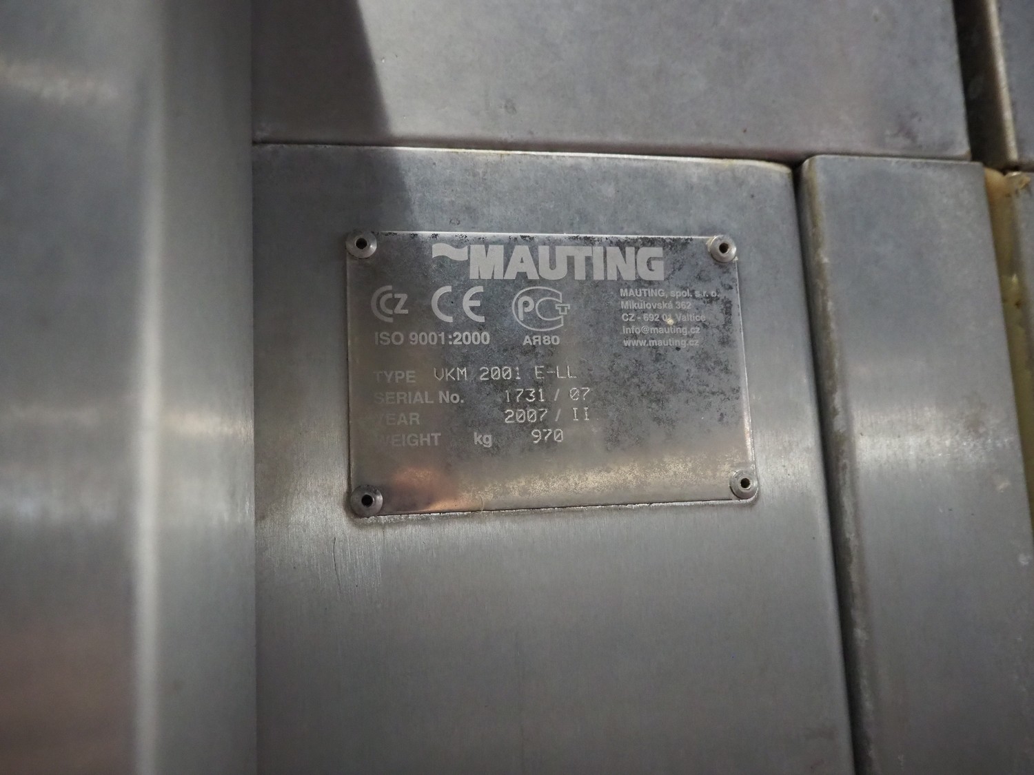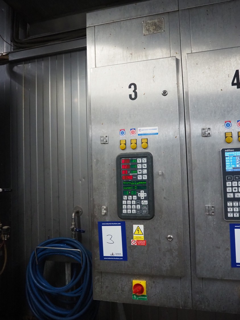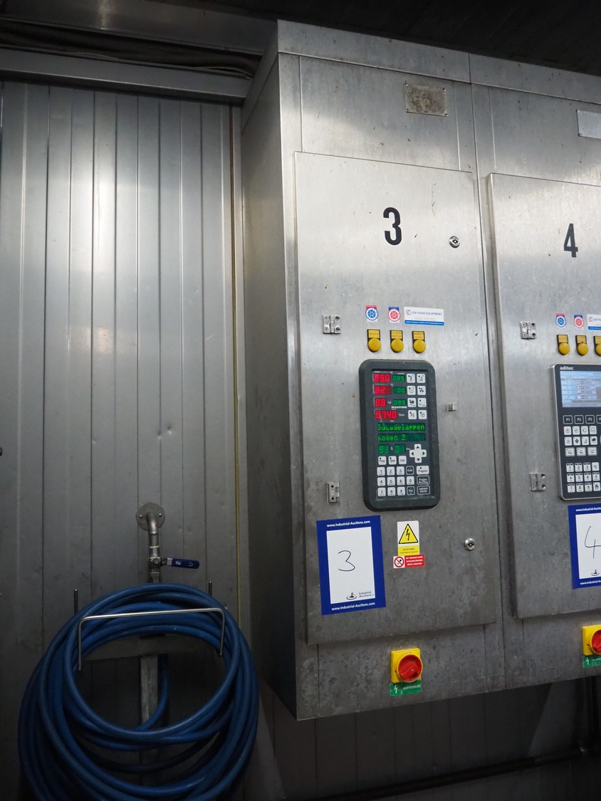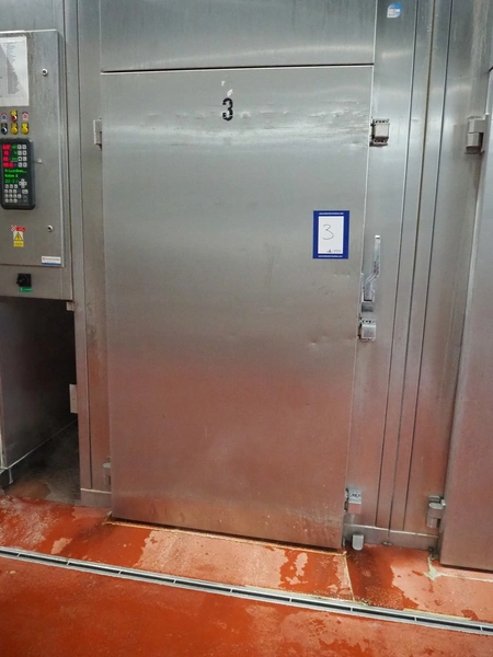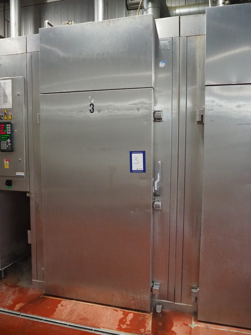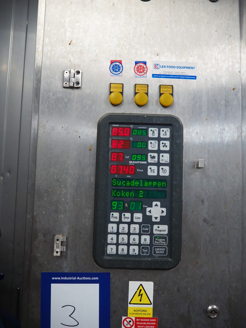 Mauting cooking and roasting chamber for 1 trolley, type: VKM 2001 E-LL, serial number: 1731/07, year of construction: 2007, 400 V, 3 Ph, 48 A, 29 kW, weight: 970 kg, electric heated, dimensions: 1570 mm x 1200 mm x 3540 mm. Including s/s switch cabinet, dimensions: 500 mm x 400 mm x 1570 mm.