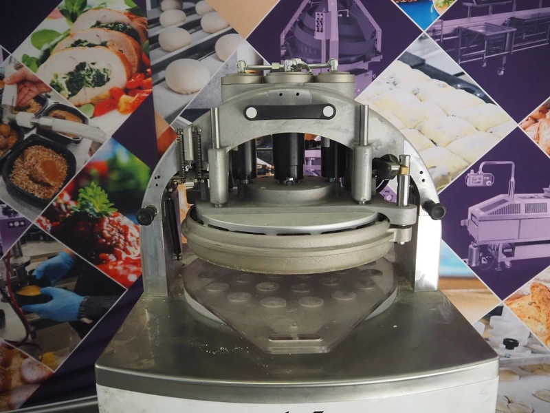 Vitella srl dough rounder, model: SPA A 30, serial number: 90153628, year of construction: 2015, 400 V, 3 Ph, 50 Hz, 5.72 A, 1.3 kW, weight: 230 kg, dyes: (30x) ø 45 mm, total dimensions: 640 mm x 600 mm x 1400 mm. Inculding 1 spare dye plate.
