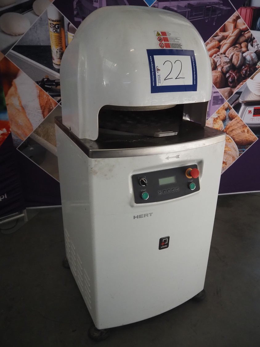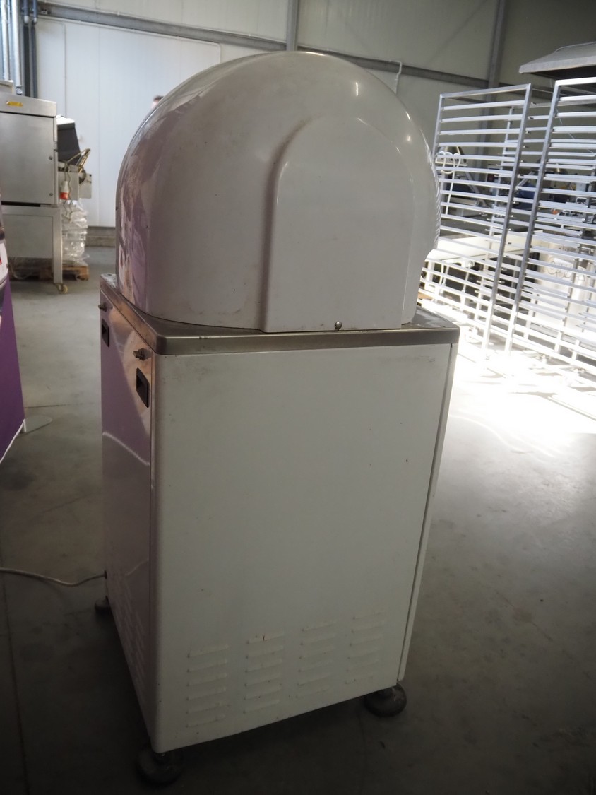 Vitella srl dough rounder, model: SPA A 30, serial number: 90153628, year of construction: 2015, 400 V, 3 Ph, 50 Hz, 5.72 A, 1.3 kW, weight: 230 kg, dyes: (30x) ø 45 mm, total dimensions: 640 mm x 600 mm x 1400 mm. Inculding 1 spare dye plate.