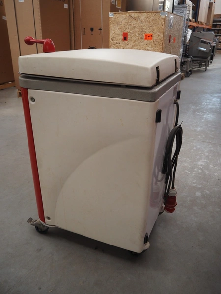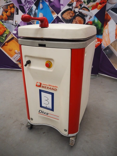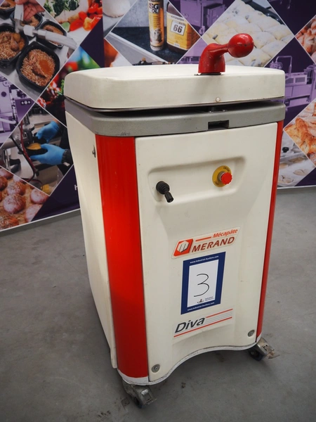 Merand mobile dough divider, model: Diva, number: 08/05/20/09, 415 V, 50 Hz, 4.1 A, 1.5 kW, 20 forms, inside dimensions: ⌀490 mm x 120 mm, total dimensions: 900 mm x 550 mm x 1100 mm.