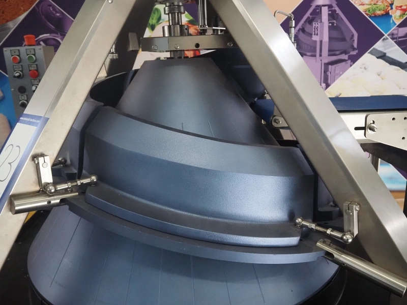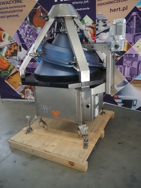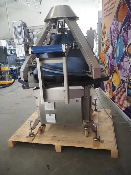 WP Haton BV mobile conical rounding machine, type: Rounder CR 59 AT, machine number: H_592142, year of construction: 2020, year of renovation: 2025, 230/400 V, 3 Ph, 50 Hz, 6.5 A, plastic belt, belt width: 280 mm, total dimensions: 1450 mm x 1200 mm x 1700 mm.