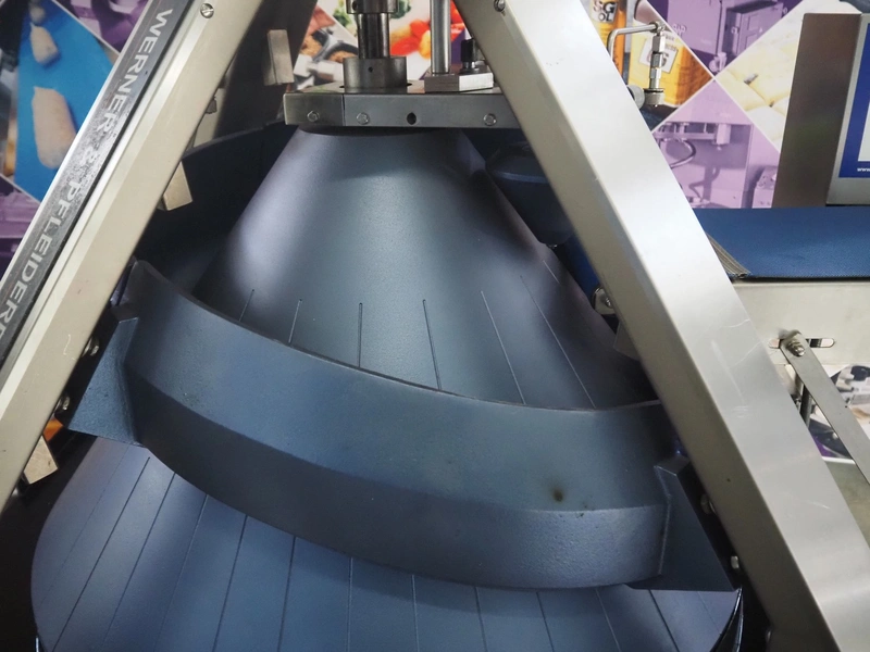 WP Haton BV mobile conical rounding machine, type: Rounder CR 59, machine number: 591526, year of renovation: 2025, 230/400 V, 3 Ph, 50 Hz, plastic belt, belt width: 280 mm, total dimensions: 1450 mm x 1200 mm x 1650 mm.