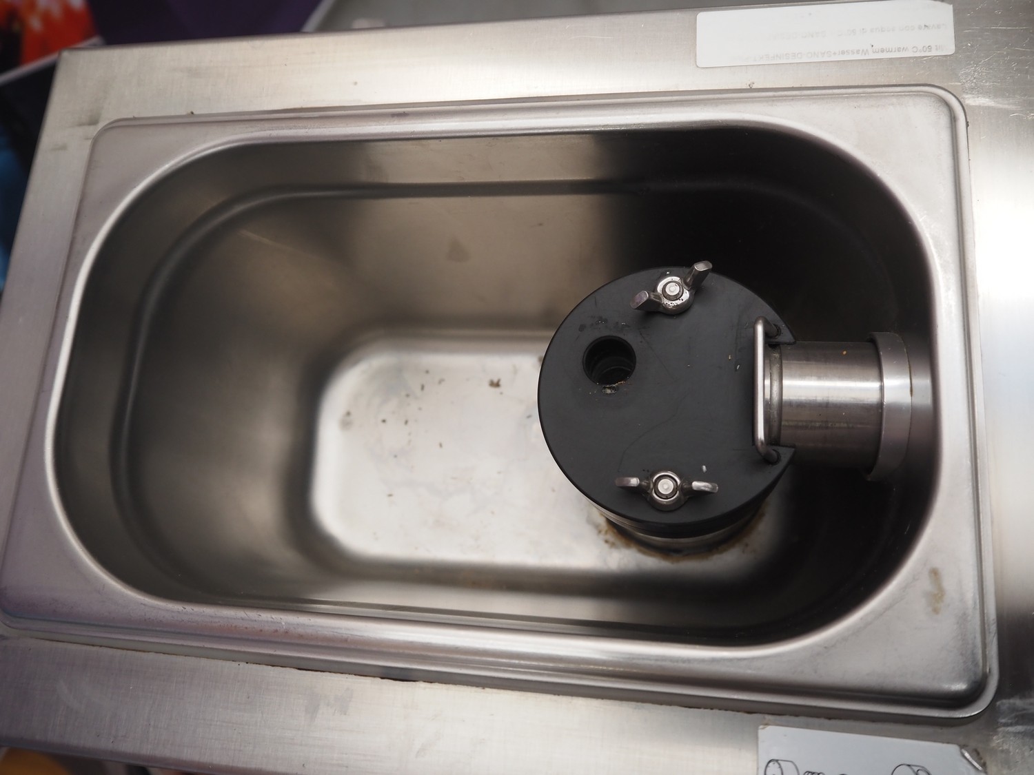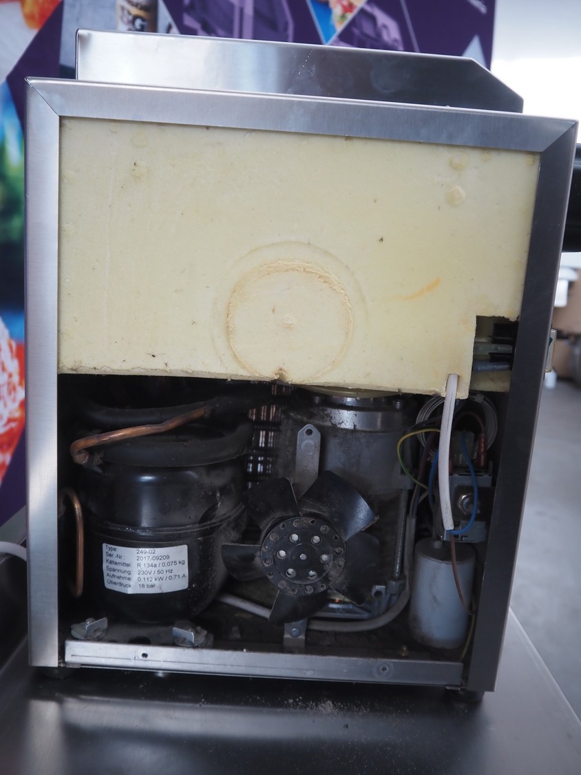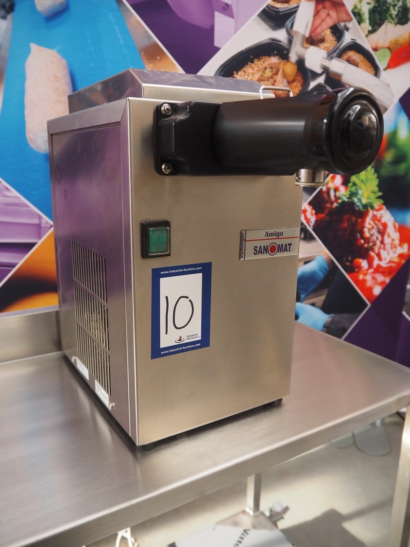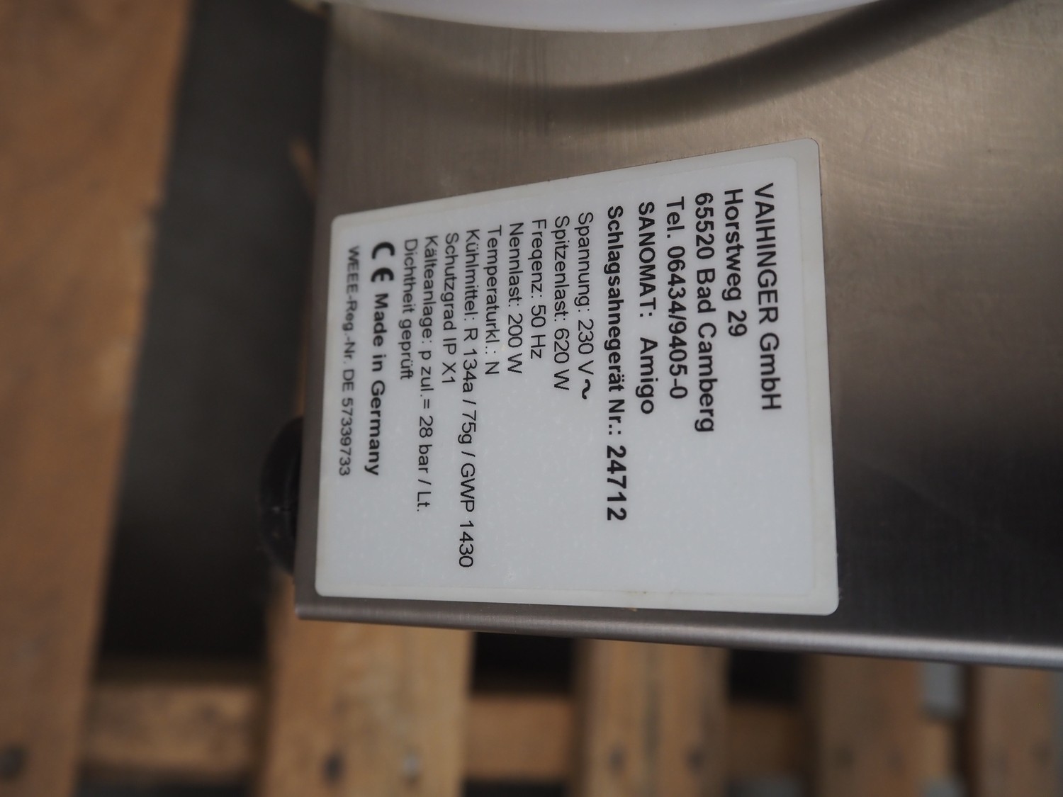 Sanomat whipped cream machine, model: Amigo, serial number: 24712, 230 V, 50 Hz, 620 W, refrigerant: R134a/75g, dimensions: 500 mm x 230 mm x 420 mm.