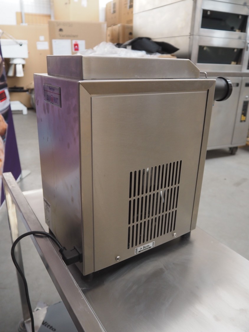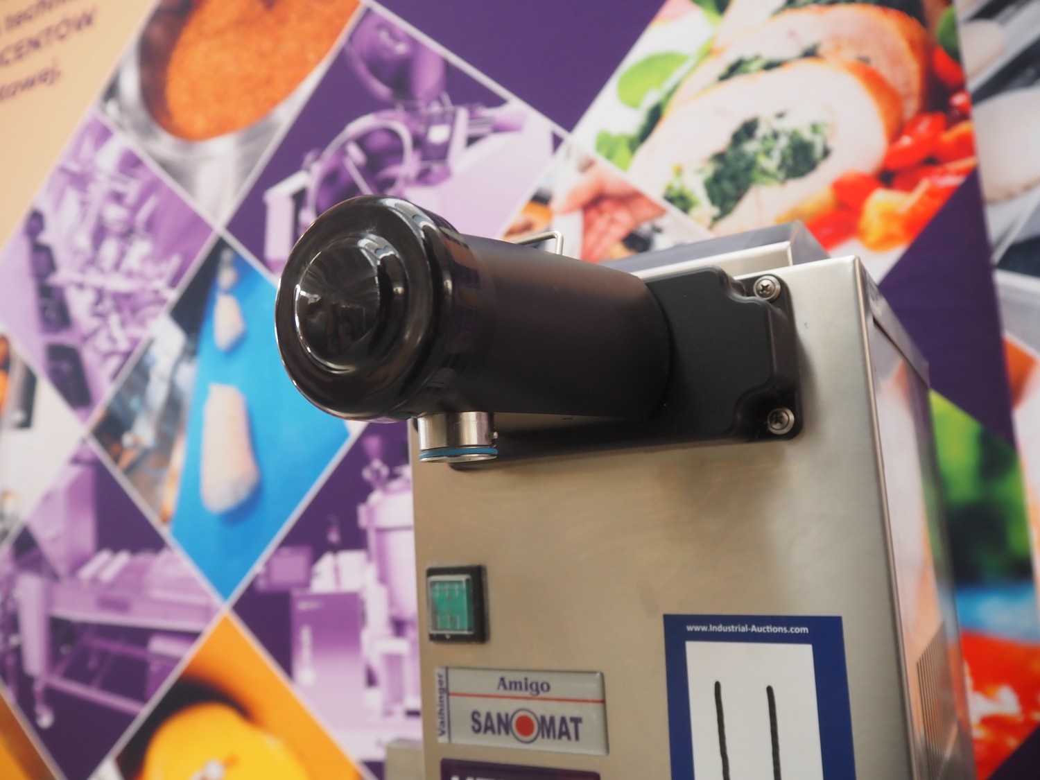 Sanomat whipped cream machine, model: Amigo, serial number: 33795, 230 V, 50 Hz, 850 W, refrigerant: R600a/30g, dimensions: 500 mm x 230 mm x 420 mm.