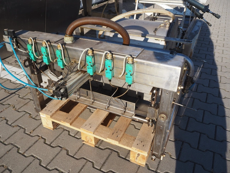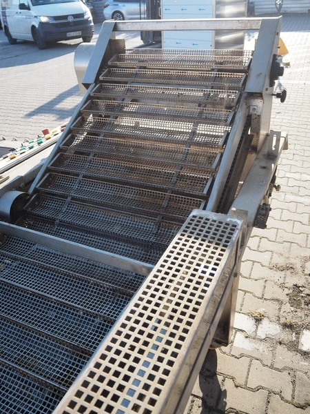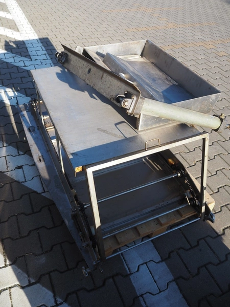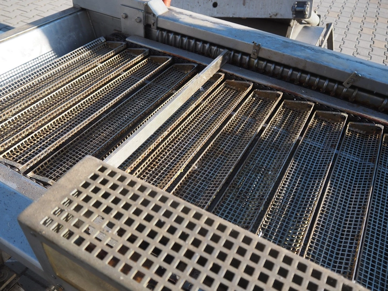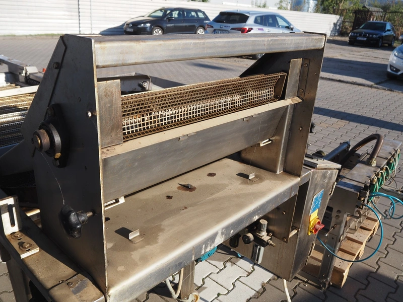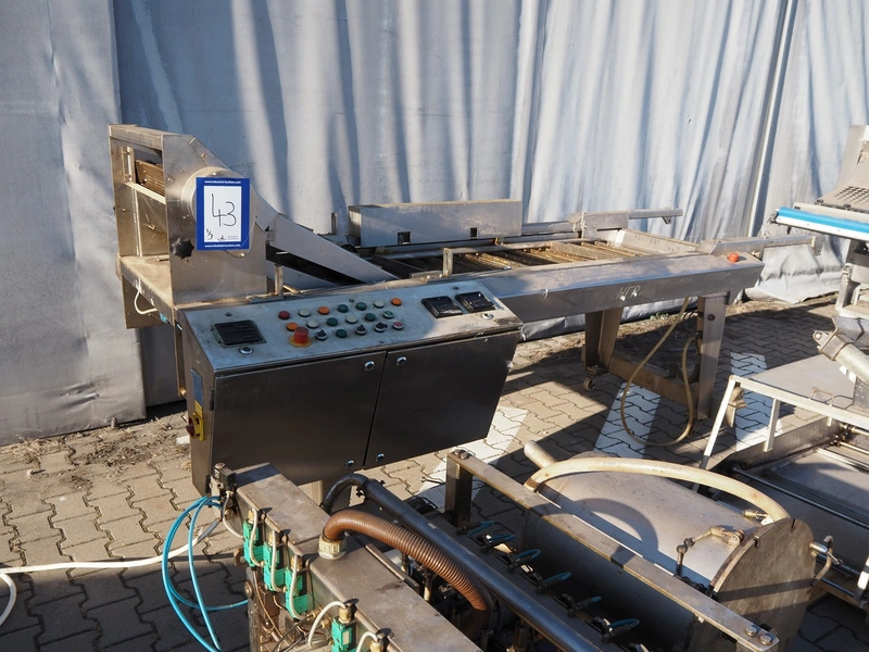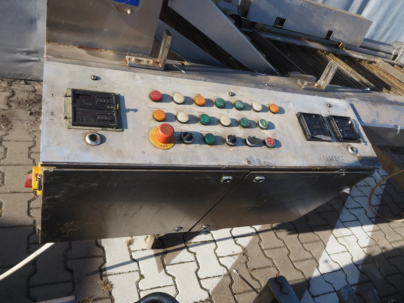 Reimelt donut fryer, type: EL 6-1000, year of construction: 1993, 380 V, 3 Ph, 50 Hz, 18.5 kW, dimensions baskets: 590 mm x 90 mm, elevating outfeed height: 1200 mm, total dimensions: 3100 mm x 1280 mm x 1410 mm. Including 2 pallets with parts, of which amoung others a dosing unit.