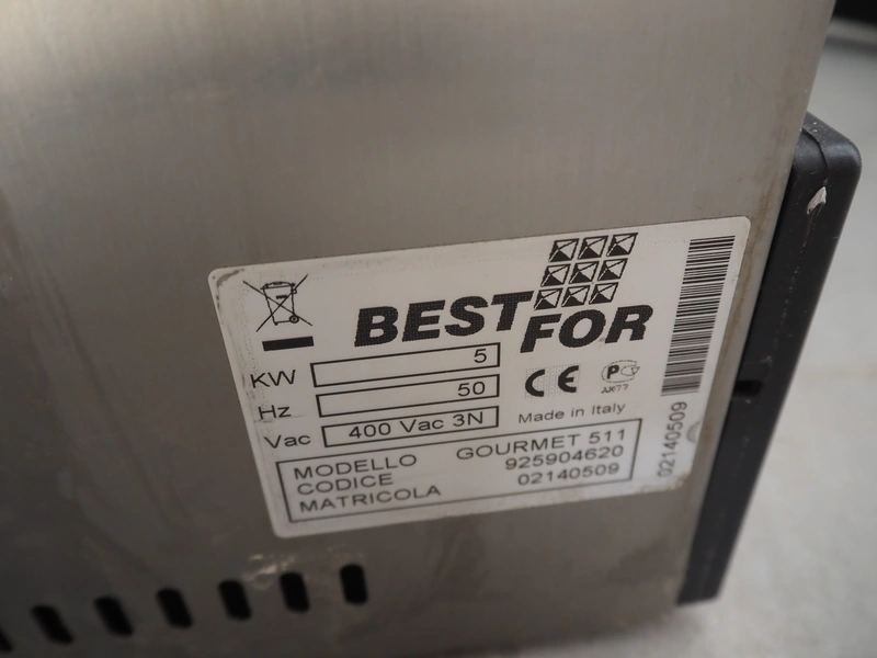 Gourmet electric oven, model: GOURMET 511, machine number: 02140509, 400 V, 50 Hz, 5 kW, 5 floors, dimensions floors: (5x) 500 mm x 330 mm, total dimensions: 750 mm x 720 mm x 630 mm. Damaged.