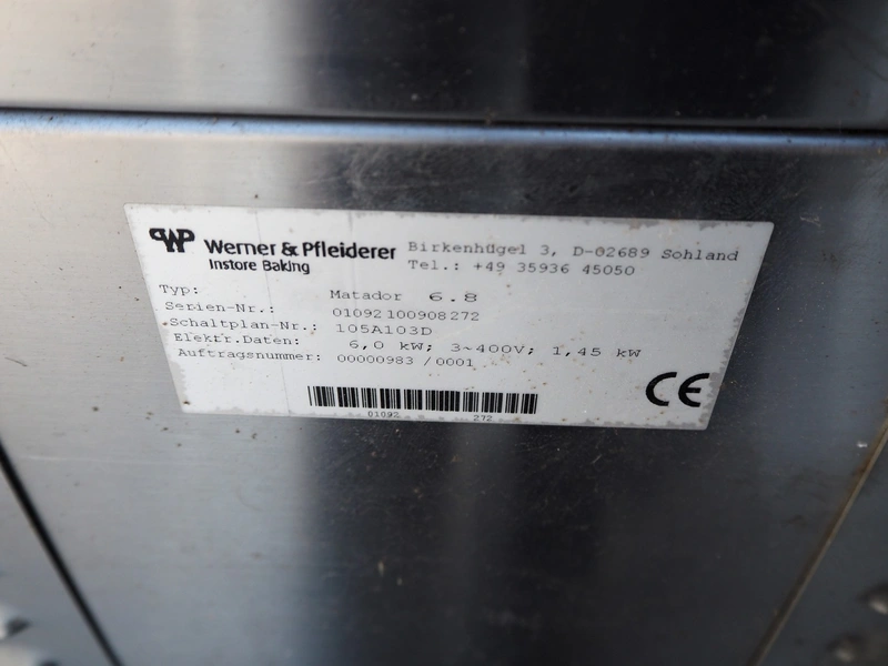 Werner & Pfleiderer oven, type: Matador 6.8, Briljant B4, 4 floors, dimensions floors: (4x) 370 mm x 600 mm, total dimensions: 1850 mm x 930 mm x 2120 mm.