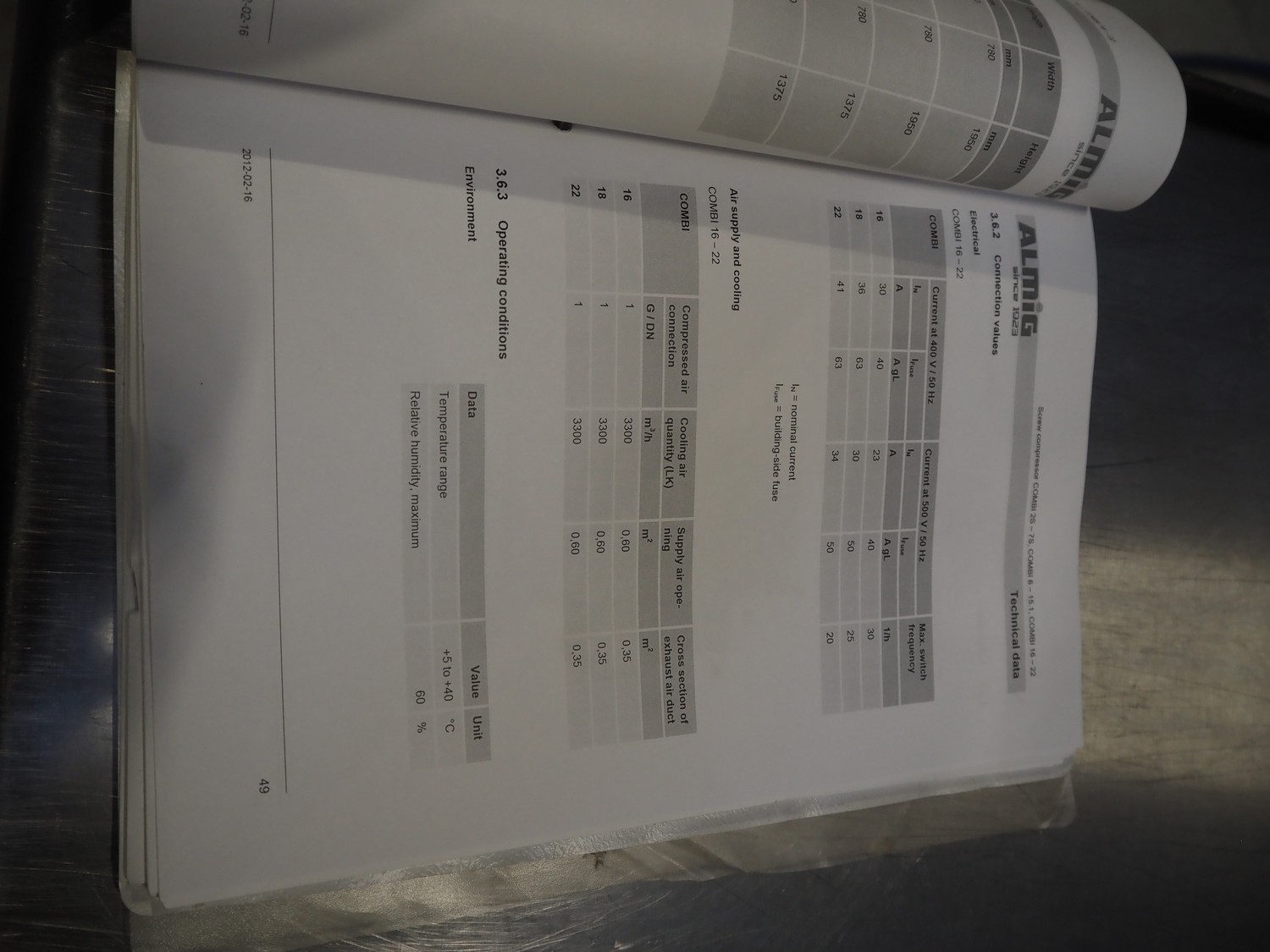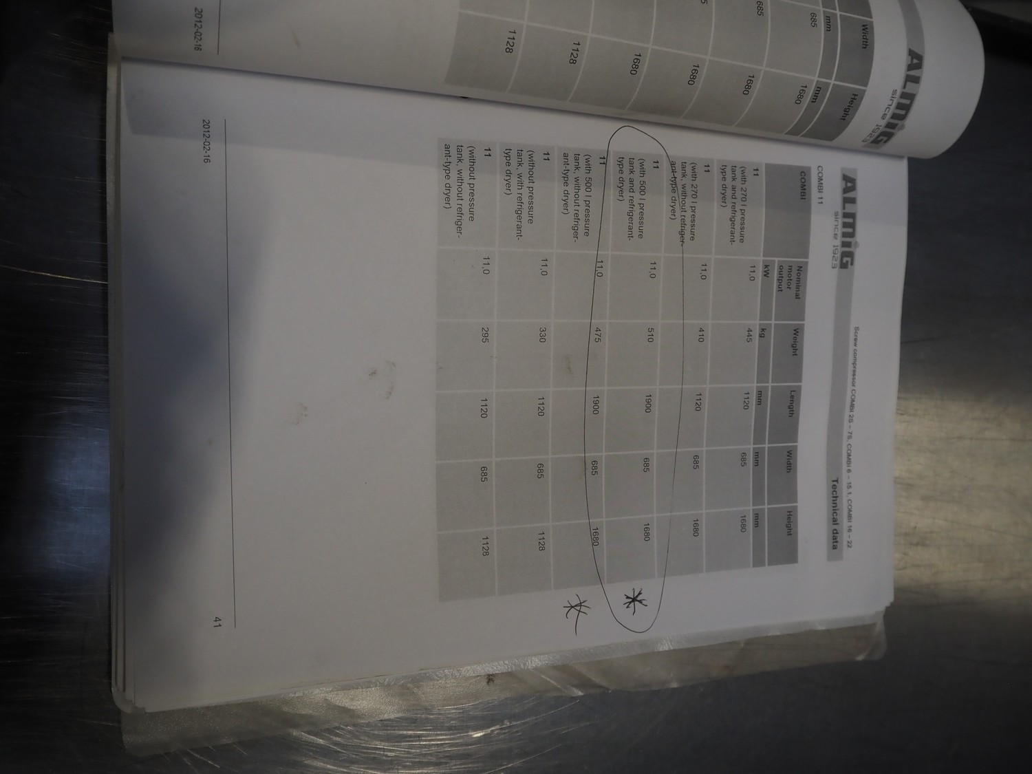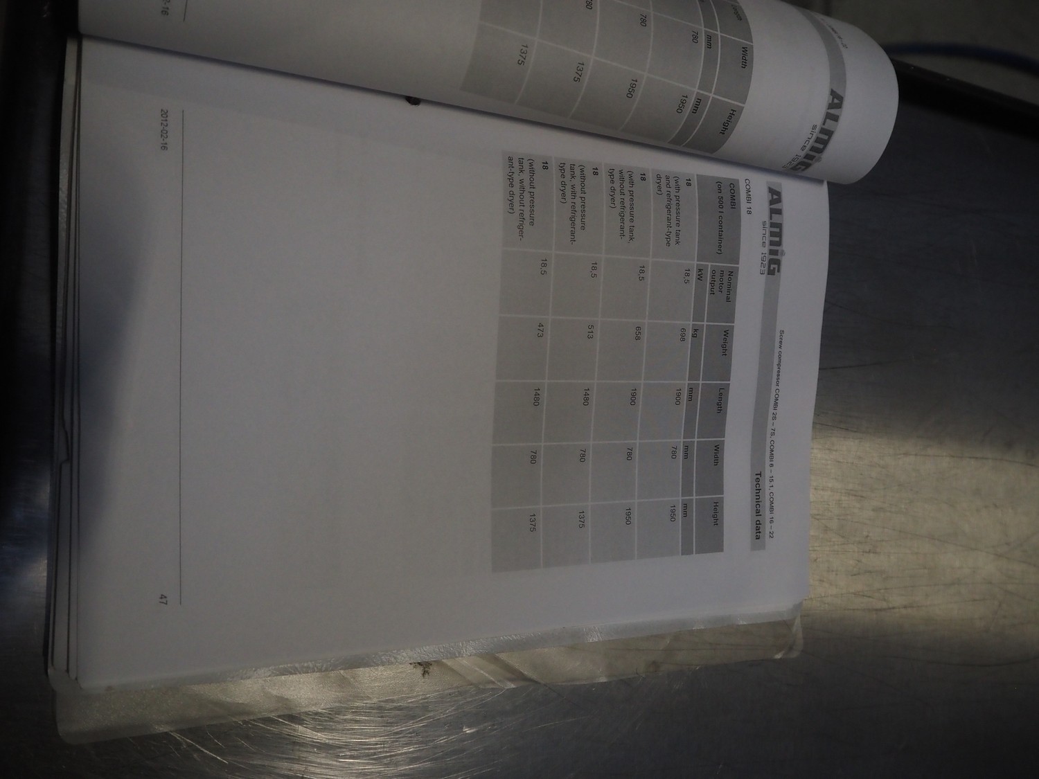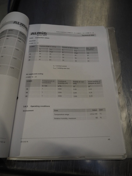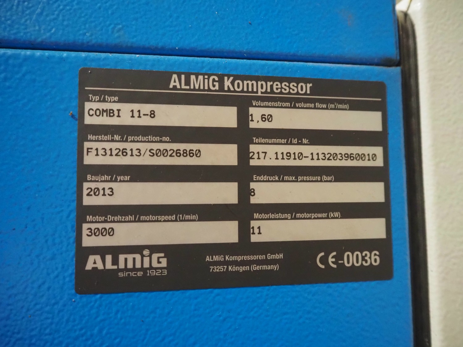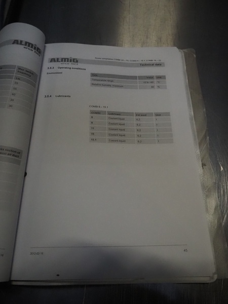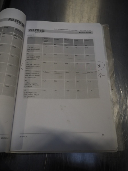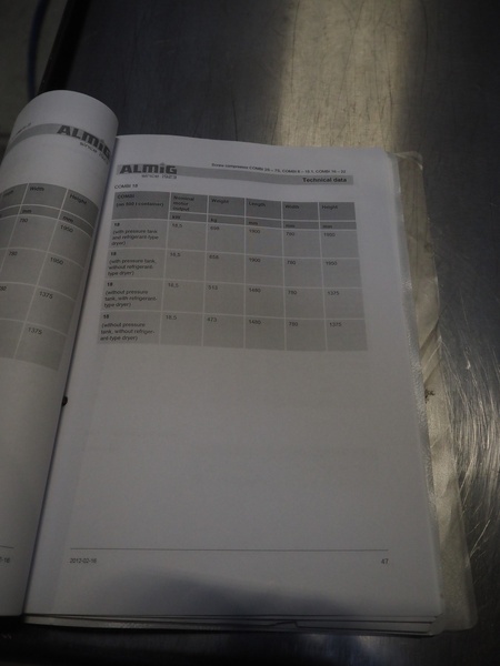 ALMiG Kompressoren GmbH air compressor with airdryer, type: COMBI 11-8, number: S0026860, year of construction: 2013, 11 kW, maximum pressure: 8 bar, volume flow: 1.60 m³/min, total dimensions: 2000 mm x 730 mm x 1720 mm. Lot located in Sławogóra (PL), viewing and pick up in consultation with Industrial Auctions B.V.