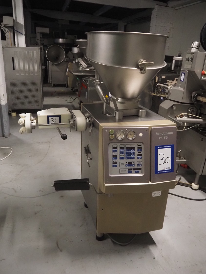 1958-30: HandtmannHandtmann vacuum filling machine, type: VF50, number: 2837, 380 V, 50 Hz, 11 A, dimensions: 860 mm x 900 mm x 1660 mm.18 bidsLot is closed