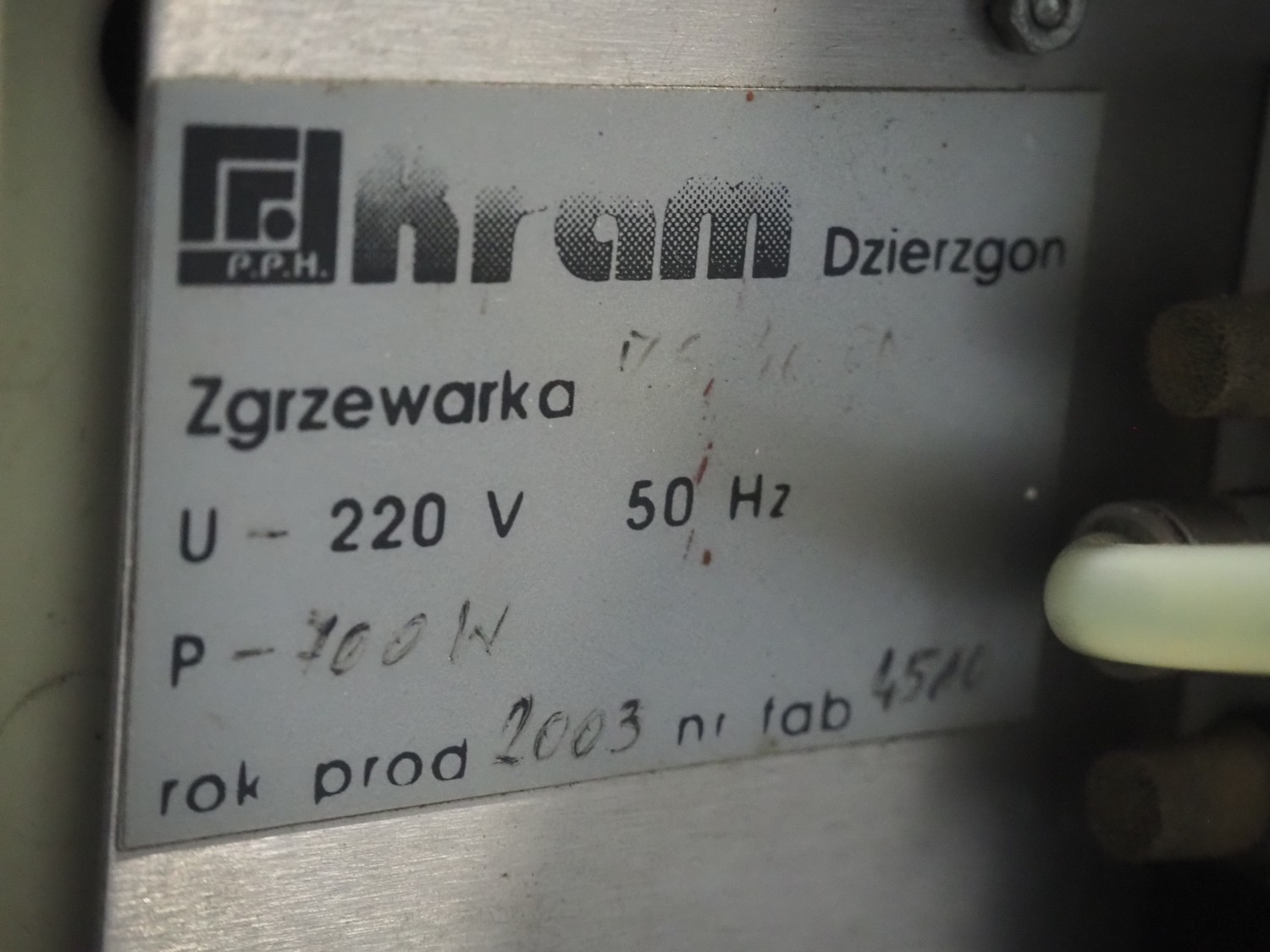 Kram bag sealer, year of construction: 2003, 220 V, 50 Hz, 700 W, seal length: 460 mm, total dimensions: 700 mm x 760 mm x 1490 mm. Lot located in Skierniewice (PL), viewing and pick up in consultation with Industrial Auctions B.V.