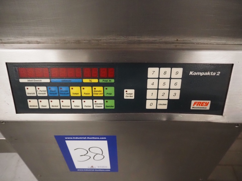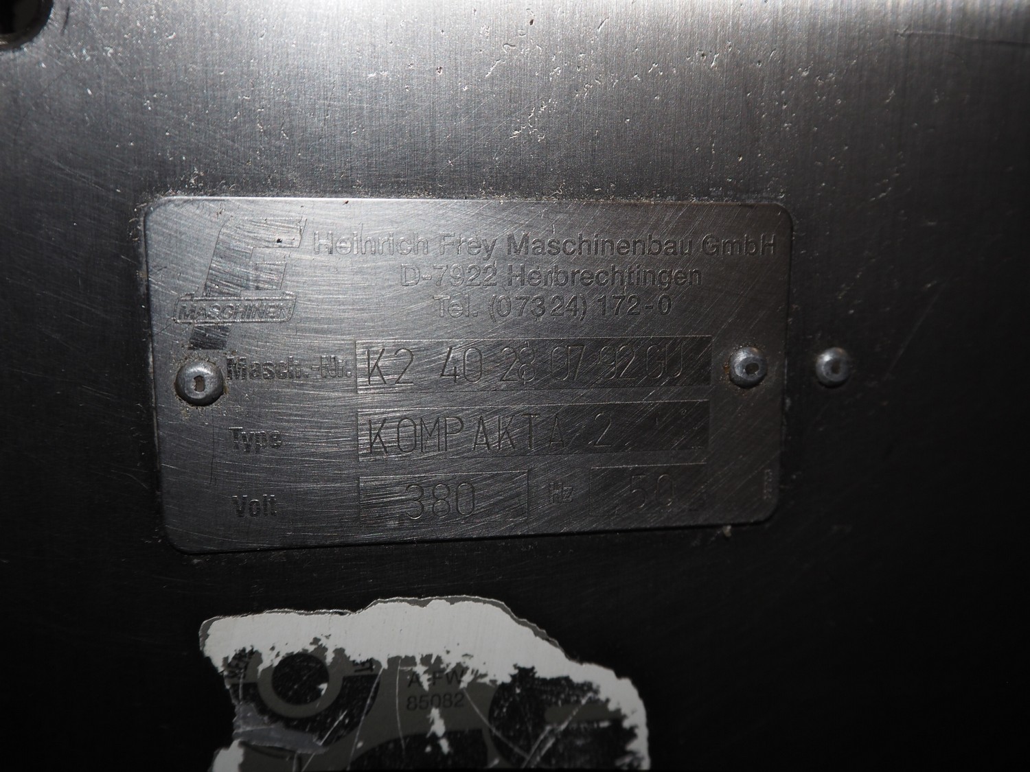 Frey Maschinenbau GmbH piston filler, type: KOMPAKTA/2, machine number: K2 40 28 07 92 GU, 380 V, 50 Hz, dimensions: 740 mm x 730 mm x 1340 mm.