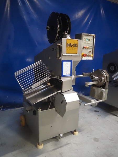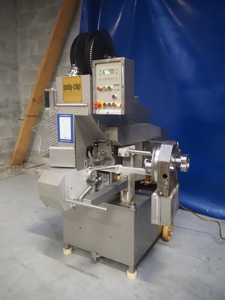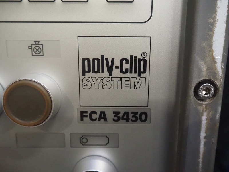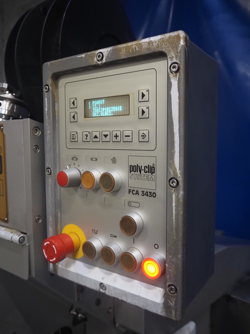 Poly-clip System GmbH & Co. KG mobile automatic double-clipper, type: FCA 3430, dimensions: 1400 mm x 1300 mm x 1900 mm. Lot located in Sławogóra (PL), viewing and pick up in consultation with Industrial Auctions B.V.