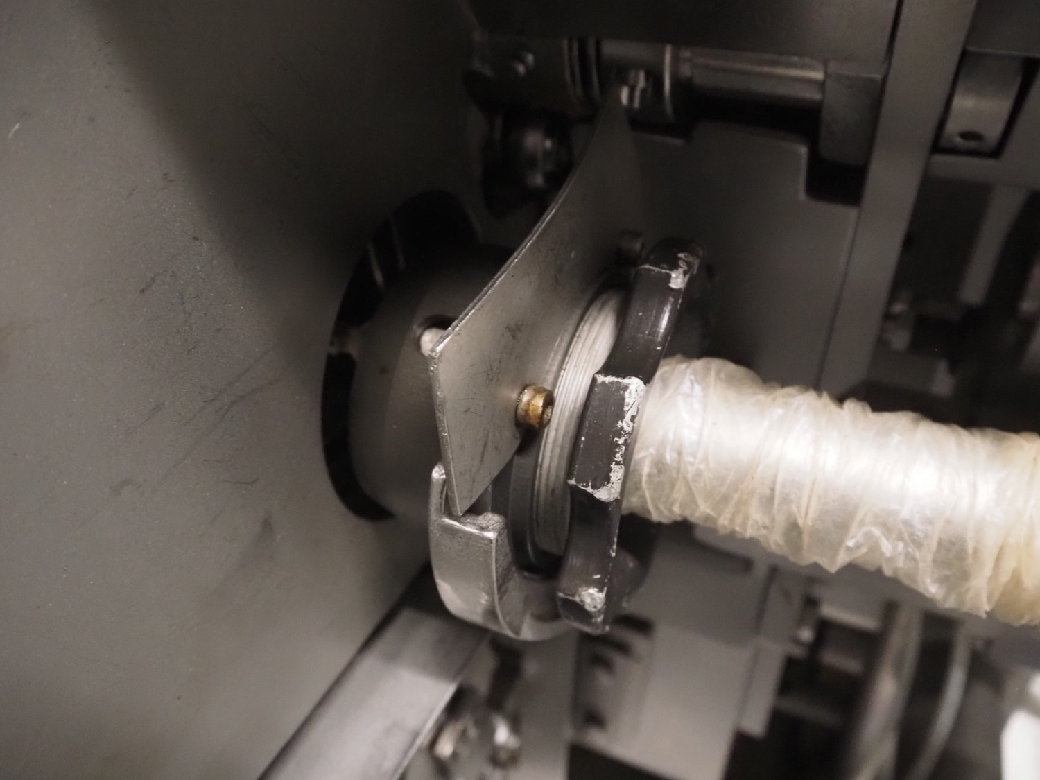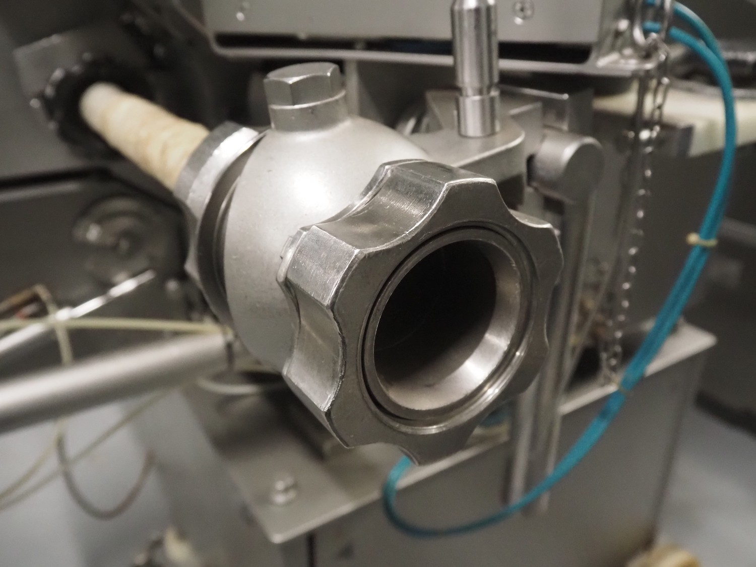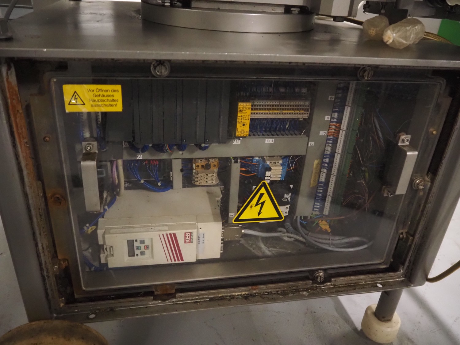 Poly-clip System GmbH & Co. KG mobile automatic double-clipper, type: FCA 3430-18, number: 142, year of construction: 2005, 400 V, 3 Ph, 50/60 Hz, 6 A, 40 kW, 5-2 bar, plastic belt, belt width: 75 mm, diameter pipe: 60 mm, total dimensions: 1440 mm x 1170 mm x 1920 mm.