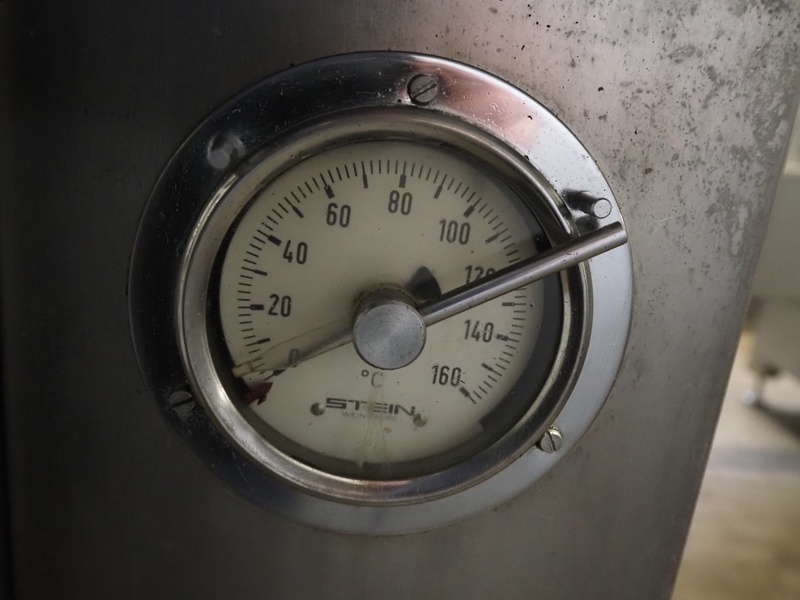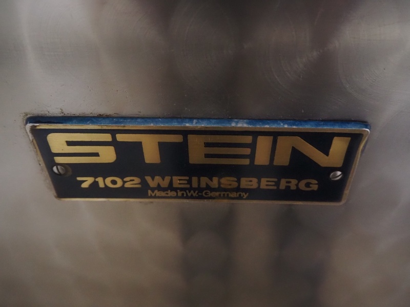 Stein cooking kettle, type: EUROPA 300, number: 86197, year of construction: 1988, 220 V, 50 Hz, 25 kW, inside dimensions: 850 mm x 950 mm x 430 mm, total dimensions: 1330 mm x 1250 mm x 1150 mm.