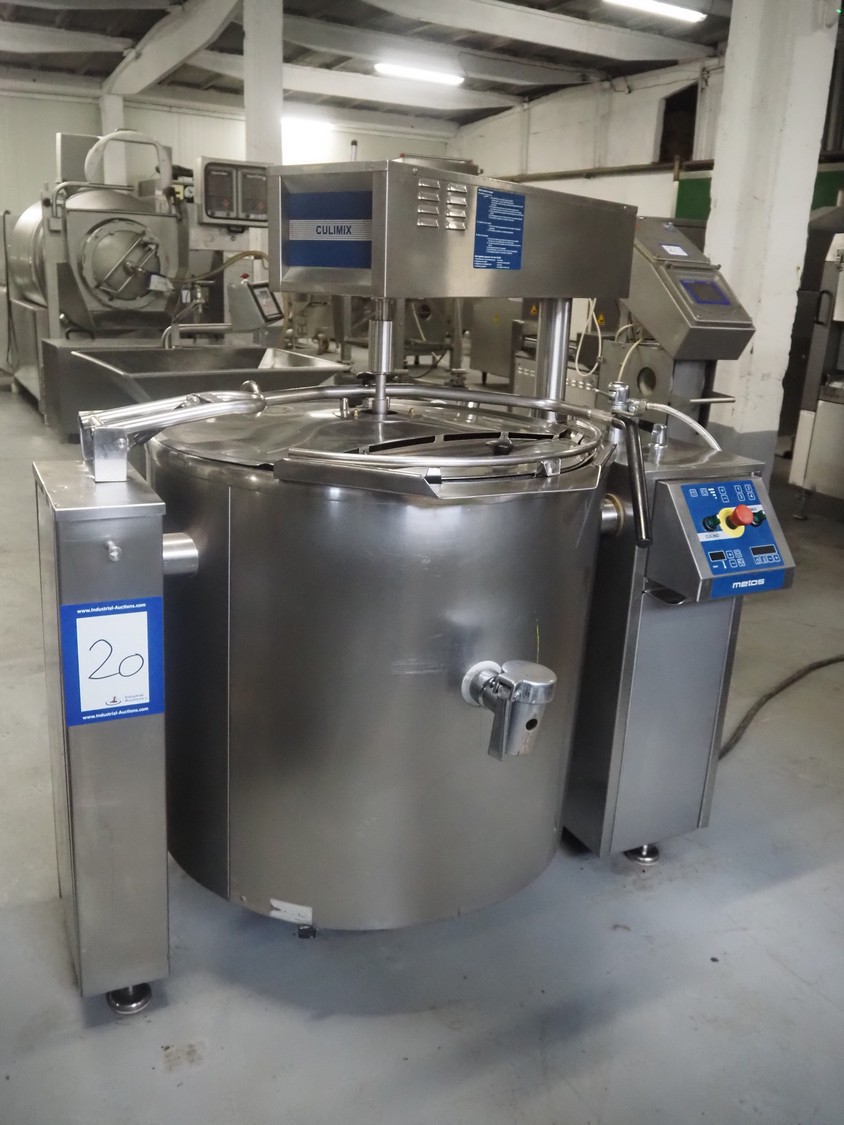 Metos cooking vessel with agitator, type: CULINO / CULIMIX, inside dimensions: Ø 750 mm x 500 mm, total dimensions: 1400 mm x 1000 mm x 1400 mm.