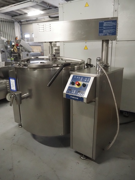 Metos cooking vessel with agitator, type: CULINO / CULIMIX, inside dimensions: Ø 750 mm x 500 mm, total dimensions: 1400 mm x 1000 mm x 1400 mm.