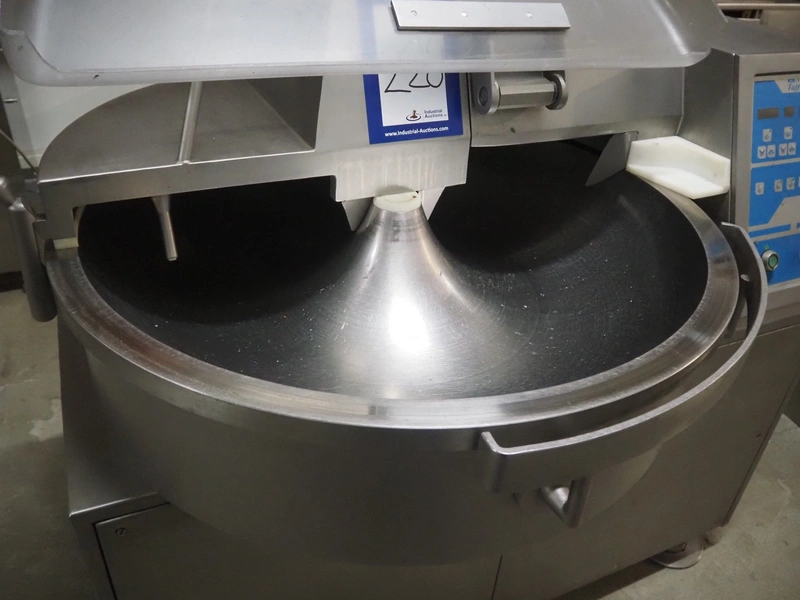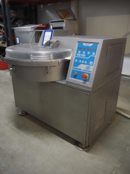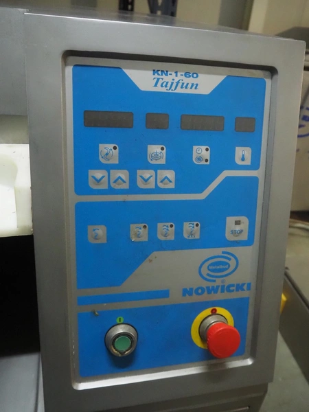 Nowicki cutter, type: KN-1-60, s/s bowl, volume bowl: 60 liter, s/s knives, total dimensions: 1340 mm x 1050 mm x 1240 mm. Including s/s switch cabinet, dimensions switch cabinet: 800 mm x 250 mm x 800 mm. Lot located in Skierniewice (PL), viewing and pick up in consultation with Industrial Auctions B.V.