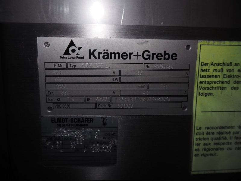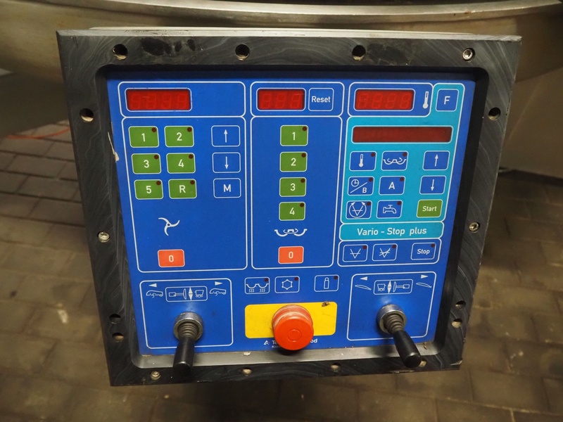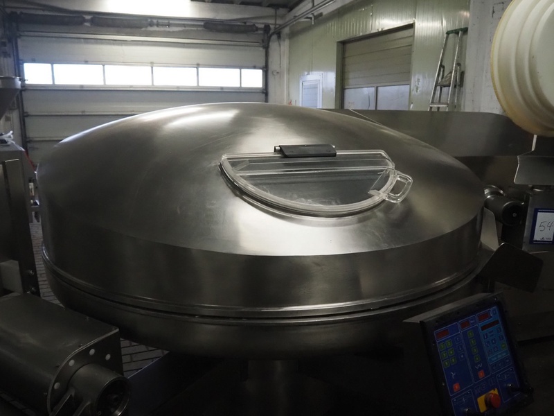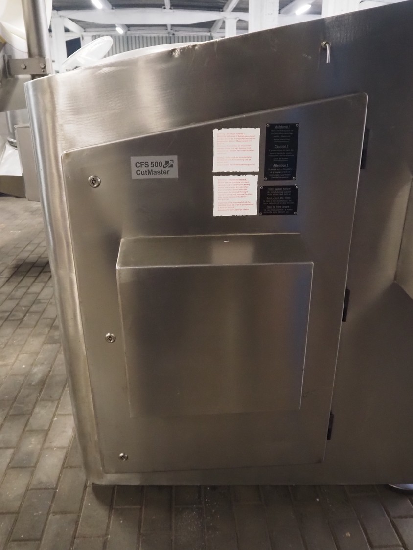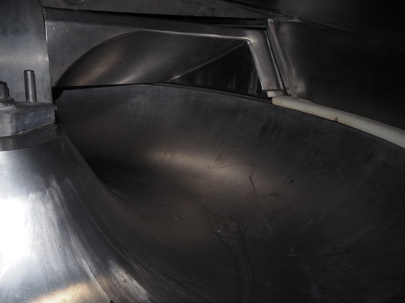Tetra Laval Food bowl cutter with lifter and ejector, type: VSM500, serial number: 288/162, year of construction: 1995, 400 V, 3 Ph, 50 Hz, 400 A, s/s bowl, volume: 500 liter, dimensions: 4720 mm x 3180 mm x 2150 mm. Including pallet with parts.