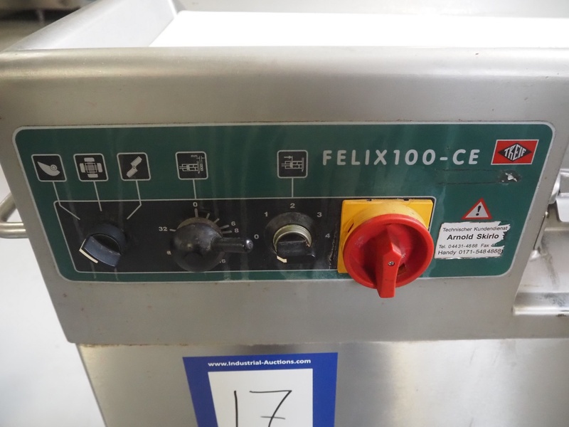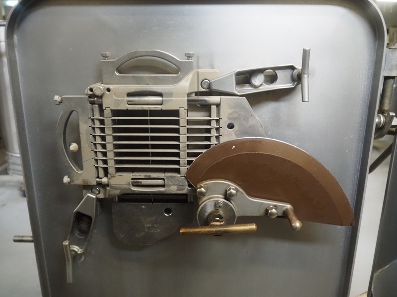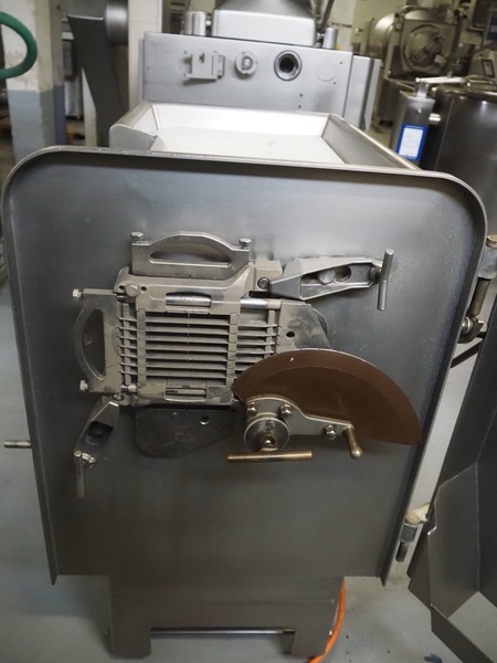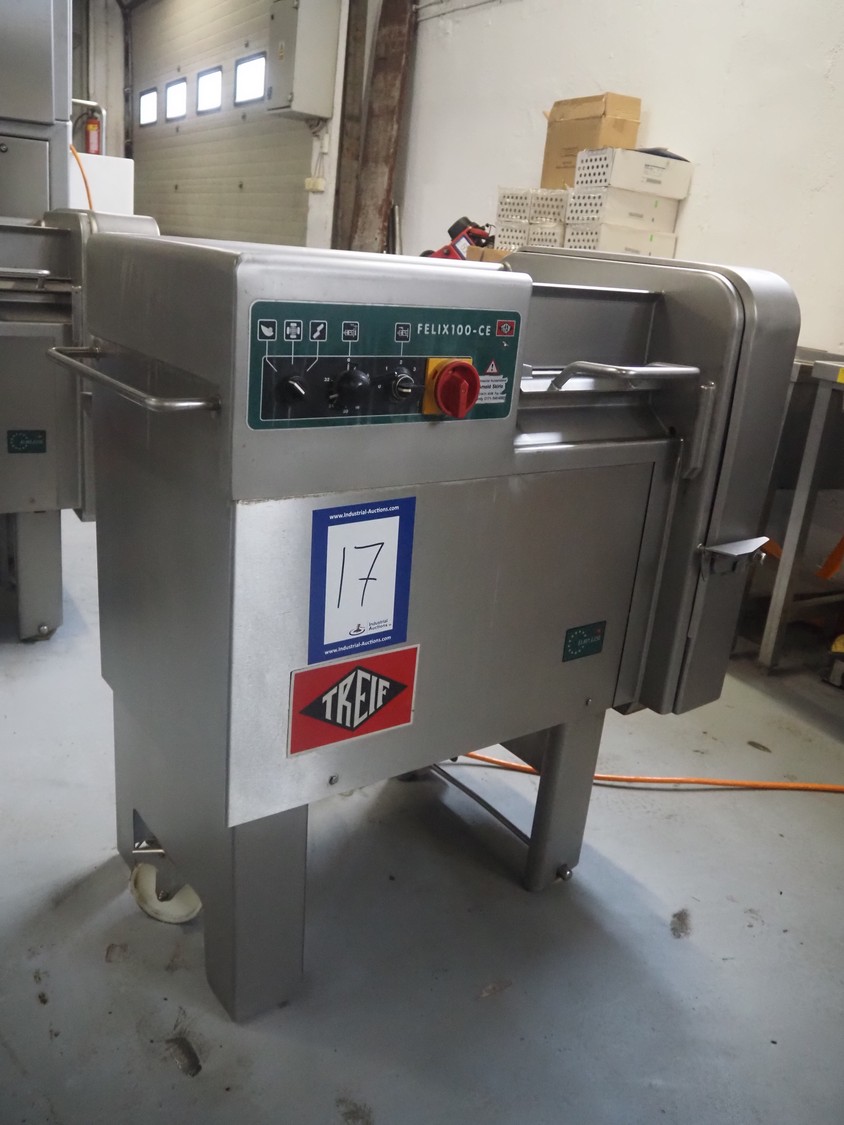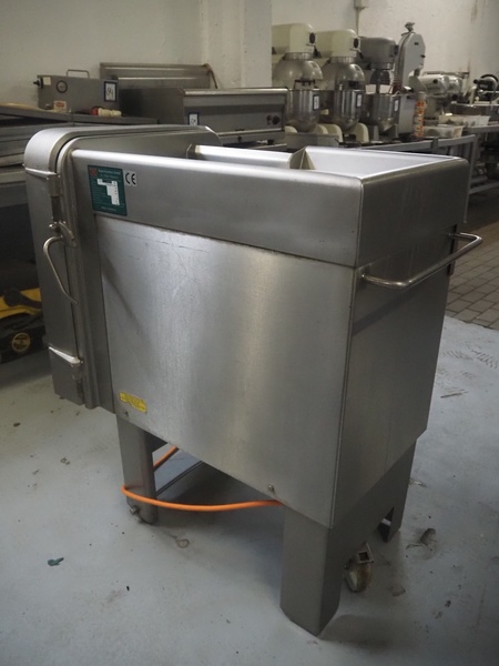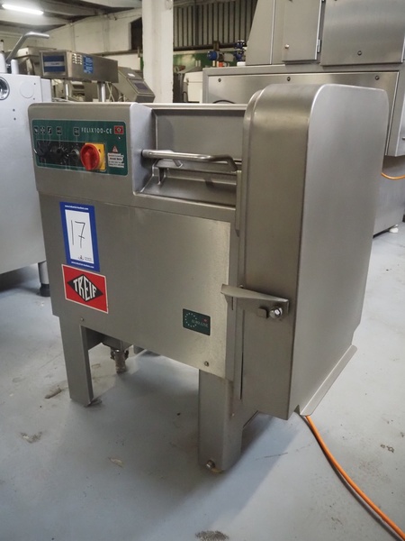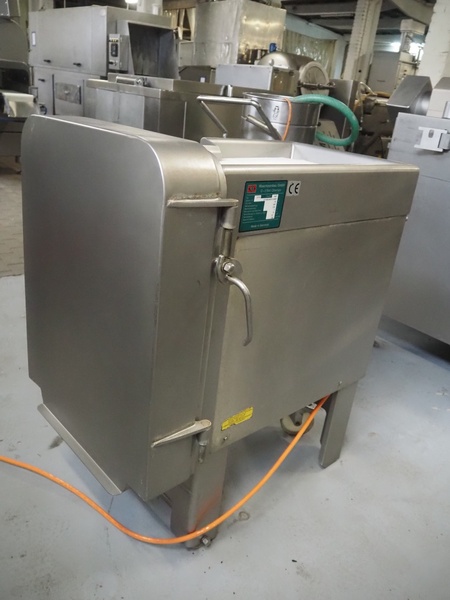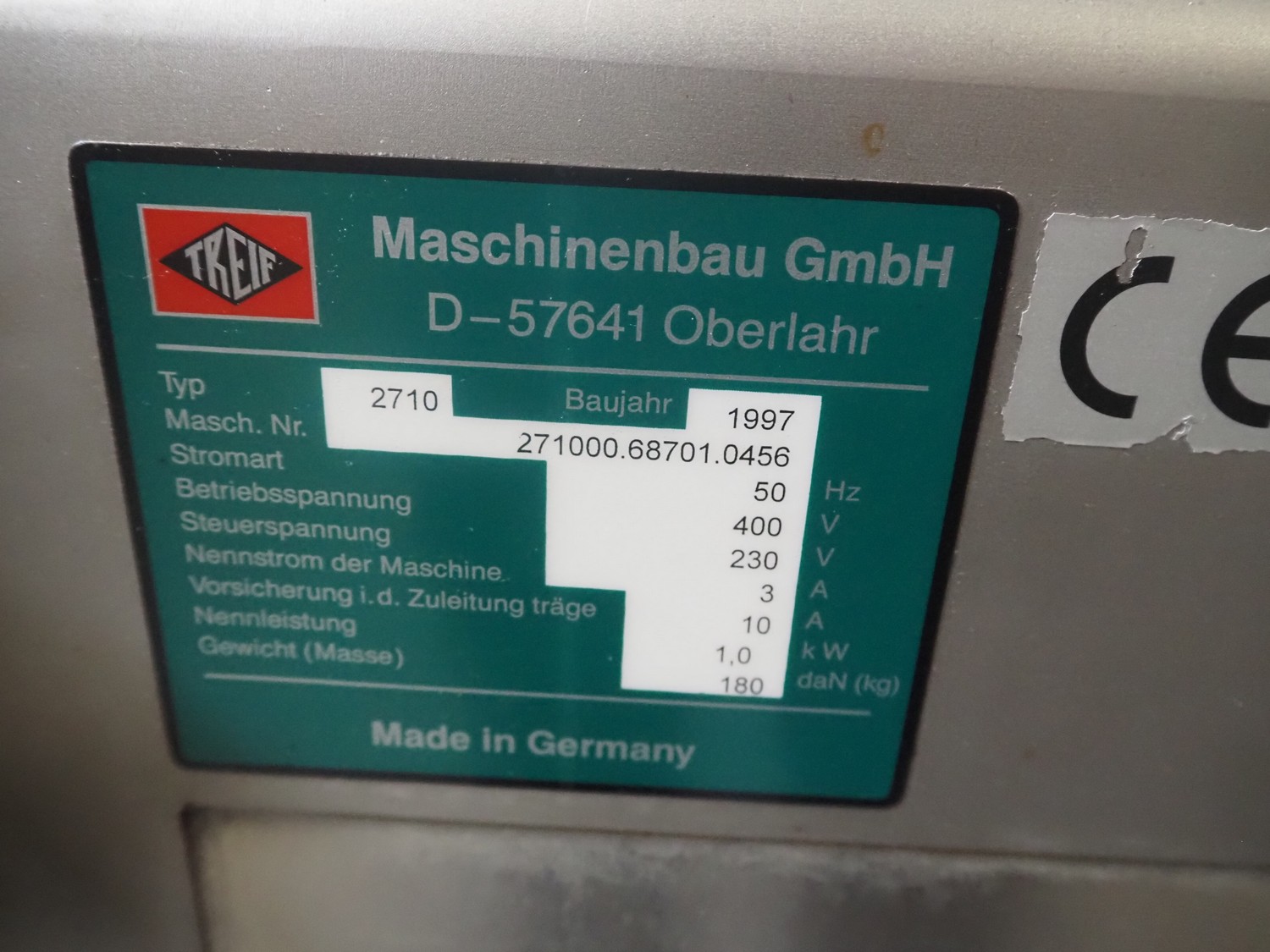 Treif Maschinenbau GmbH mobile dicer, type: 2710, machine number: 271000.68701.0456, year of construction: 1997, 230/400 V, 50 Hz, 3/10 A, 1.0 kW, machine weight: 180 kg, chamber: 300 mm x 100 mm x 100 mm, grid: 12 mm x 45 mm, total dimensions: 1000 mm x 600 mm x 1050 mm.