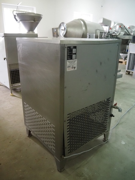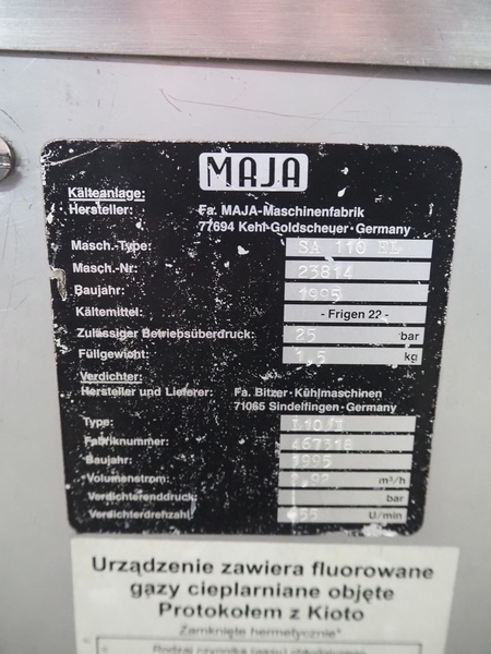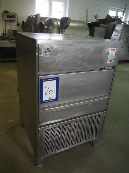 Maja ice machine with bunker, type: SA 110 EL, serial number: 23814, year of construction: 1995, bunker dimensions: 600 mm x 590 mm x 280 mm, total dimensions: 750 mm x 750 mm x 1190 mm. Lot located in Skierniewice (PL), viewing and pick up in consultation with Industrial Auctions B.V.