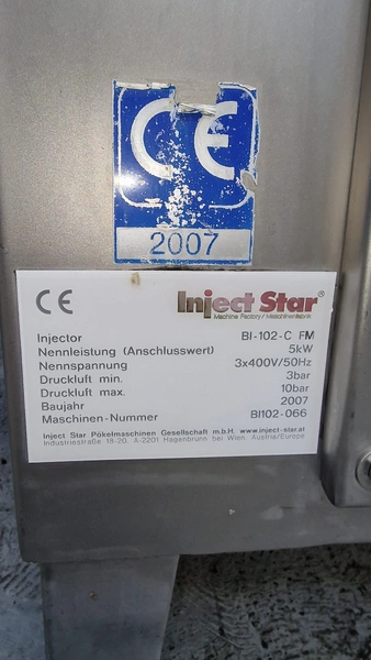 Inject star tenderizer, type: BI-102-C FM, machine number: VI102-066, year of construction: 2007, 400 V, 3 Ph, 50 Hz, 5 kW, 3/10 bar, dimensions: 1700 mm x 1200 mm x 2100 mm. Lot located in Sławogóra (PL), viewing and pick up in consultation with Industrial Auctions B.V.