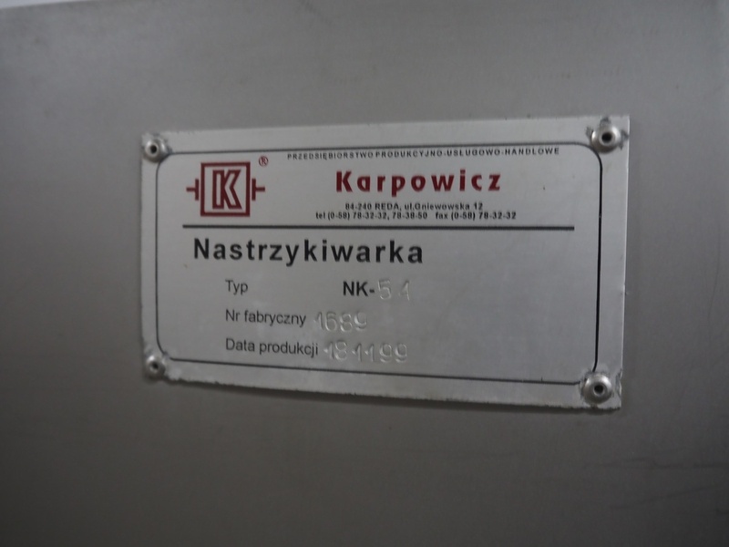 Karpowicz injector, type: NK-54, serial number: 1689, year of construction: 18-11-99, 54 needles, s/s belt, belt width: 400 mm, clearance: 410 mm x 210 mm, total dimensions: 1830 mm x 660 mm x 1880 mm. Lot located in Skierniewice (PL), viewing and pick up in consultation with Industrial Auctions B.V.
