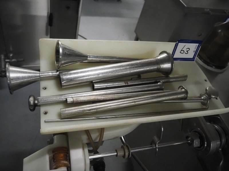 Vemag Maschinenbau GmbH case holding device, number: 8590049, dimensions: 640 mm x 400 mm x 340 mm. Including extra filling pipes, different sizes.