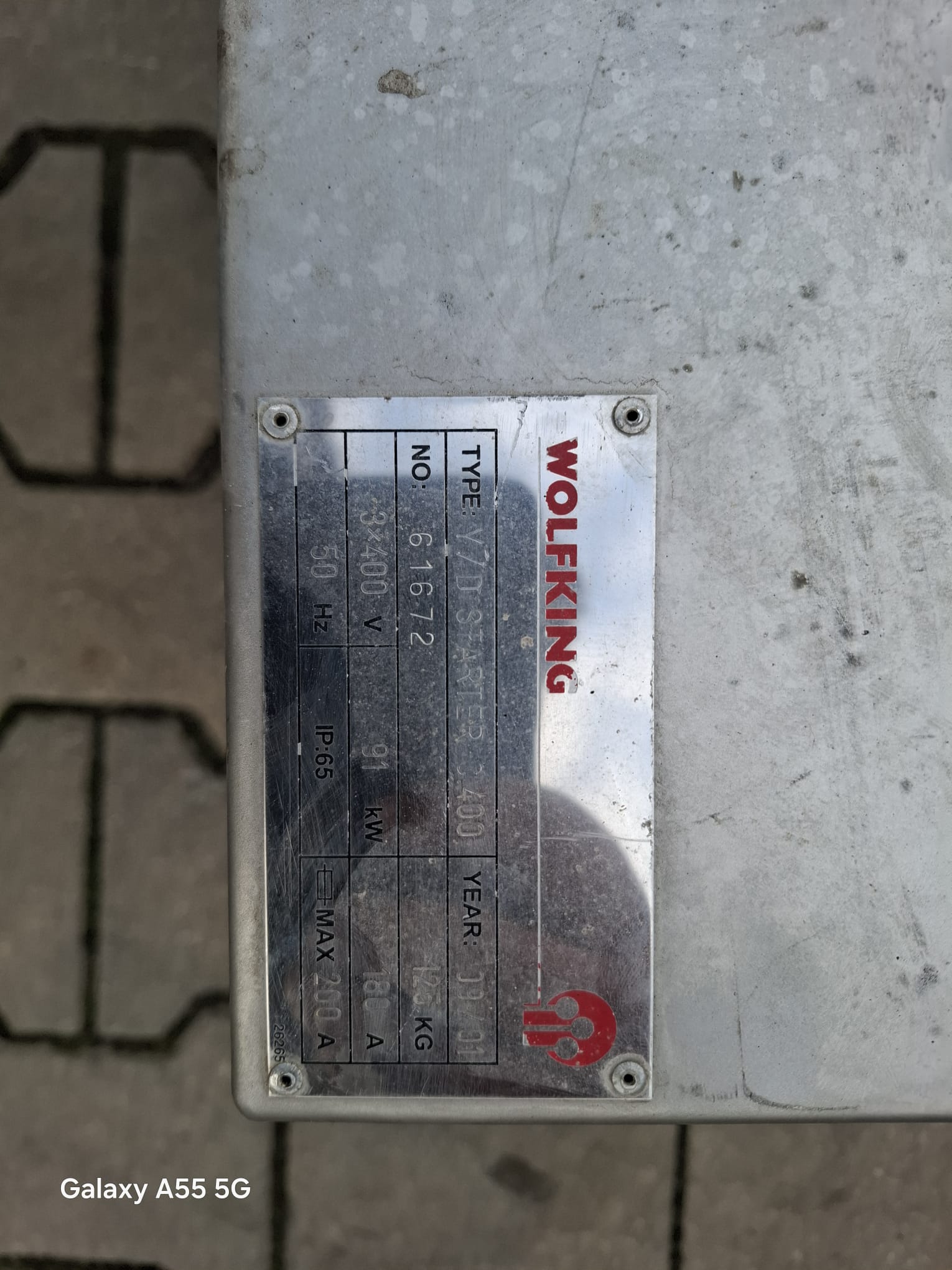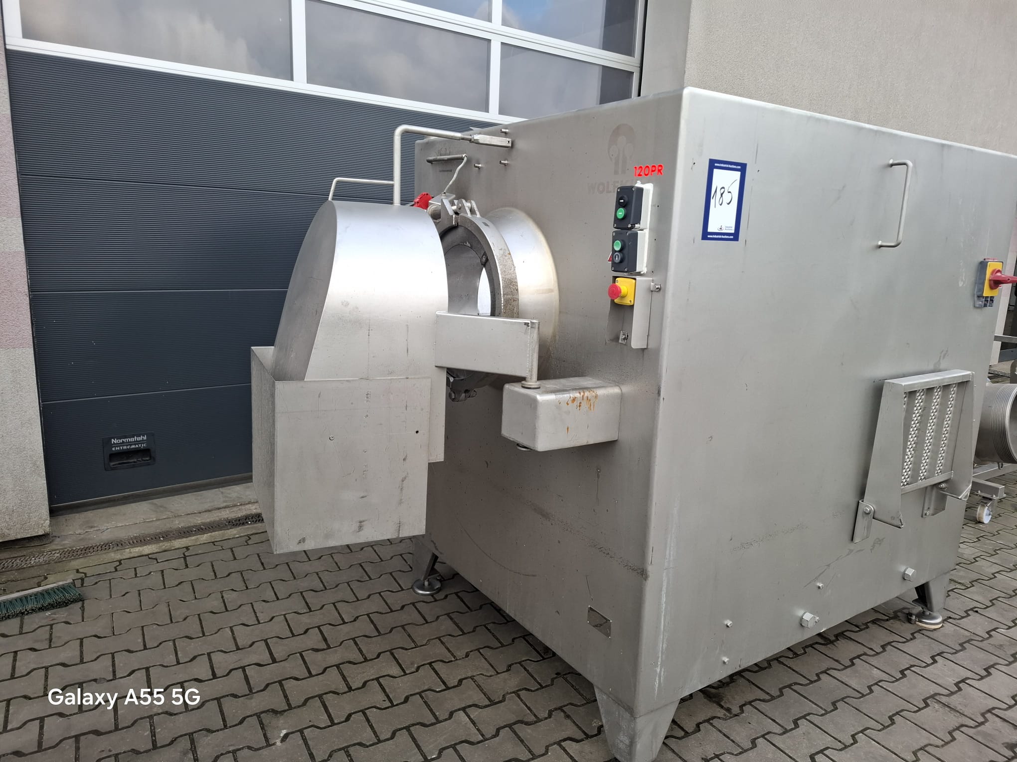 Wolfking grinder, type: C.400-UNI, number: 61671, year of construction: 2001, 400 V, 50 Hz, 162 A, 90 kW, dimensions: 2900 mm x 2100 mm x 1900 mm, Carnitech A/S lifter for 200 liter meat bins, type: L 25, number: 388, year of construction: 1986, 3 x 220 V, 50 Hz, 0.55 kW, Wolfking switch cabinet. Lot located in Sławogóra (PL), viewing and pick up in consultation with Industrial Auctions B.V.