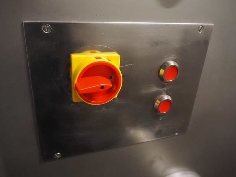 Laska Maschinenfabrik grinder, type: ww-140-2, serial number: A-5123, 380 V, 50 Hz, 21/287 A, 10/13 kW, plate diameter: 140 mm, total dimensions: 1400 mm x 1080 mm x 1370 mm.