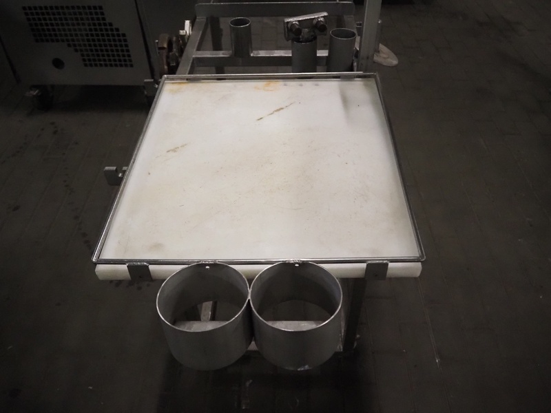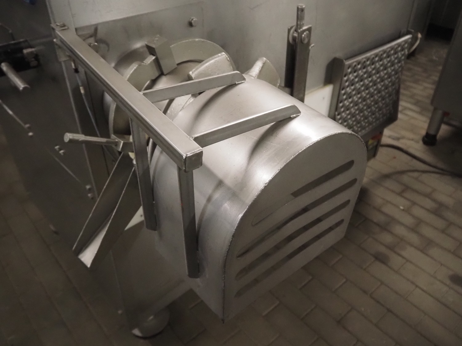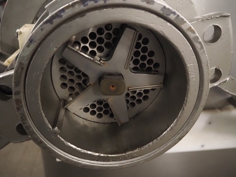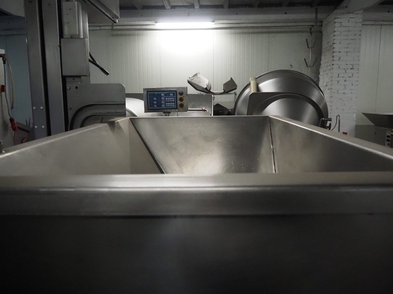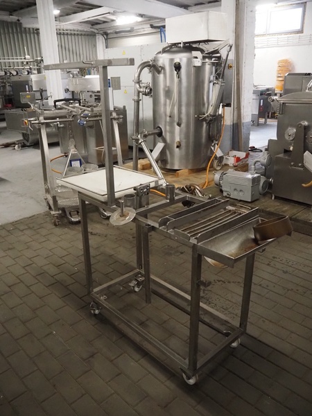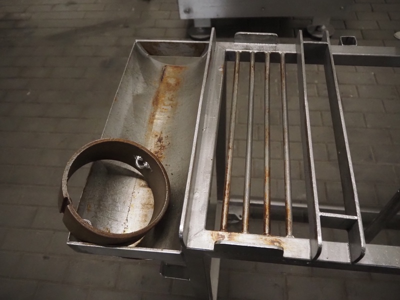 Kramer + Grebe grinder with Carsø lifter for 200 liter meat bins, type grinder: WW 160, number: 197/460/1, year of construction: 1987, diameter plate: 160 mm, type lifter: HKV200, number: SM 9879364, year of construction: 2009, 400 V, 3 Ph, 0.75 kW, total dimensions: 2320 mm x 1900 mm x 2600 mm. Including s/s tool trolley with plates and knives, dimensions tool trolley: 1450 mm x 630 mm x 1530 mm.
