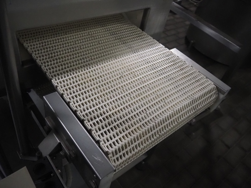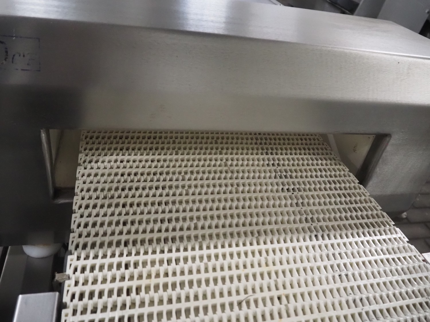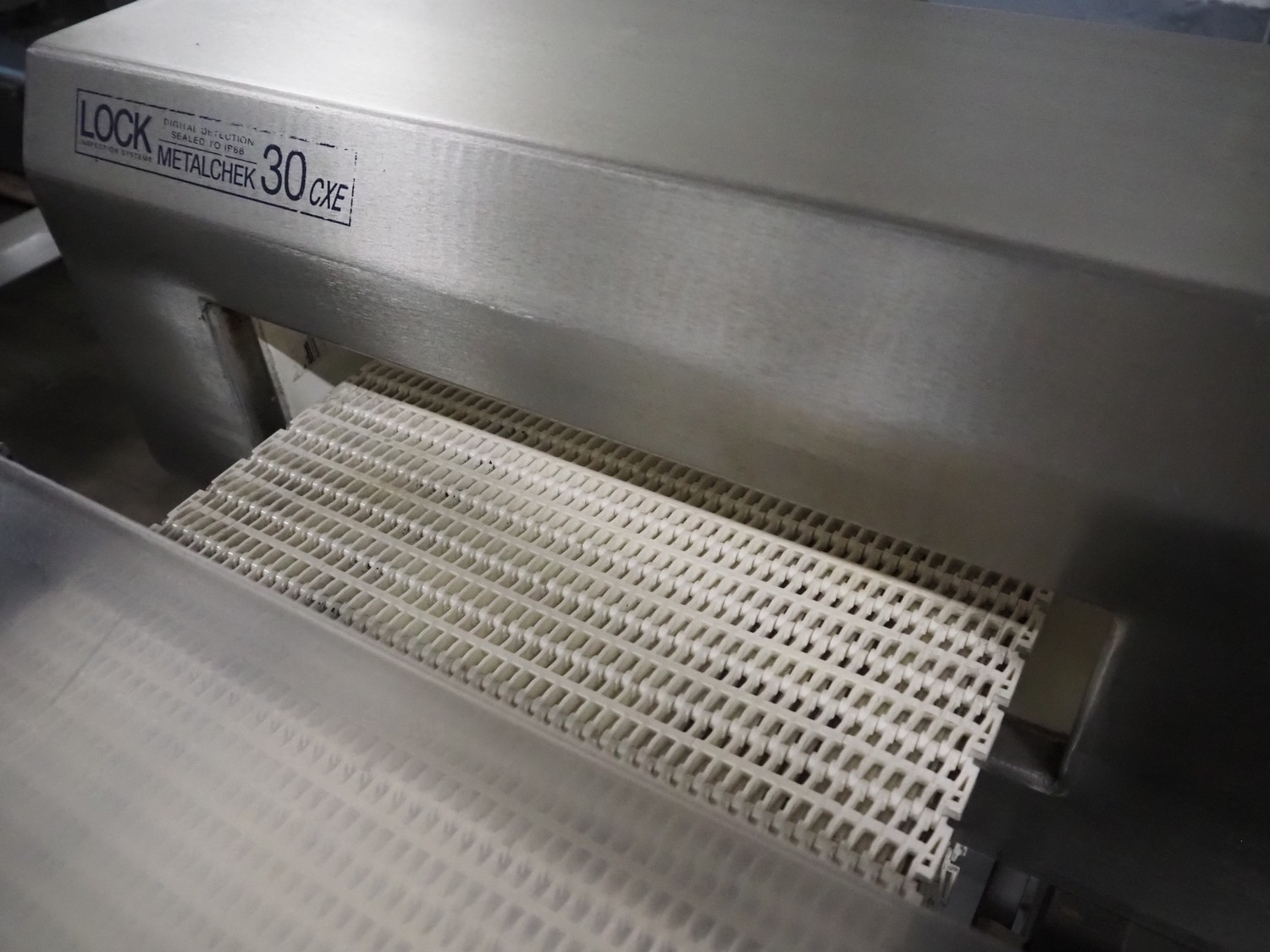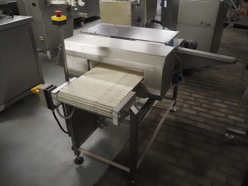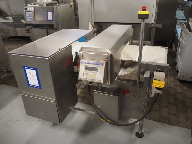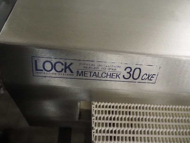 Lock Inspection Systems metal detector with rejector, type: 00006919, number: 99/0011, year of construction: APR-1999, plastic mesh belt, belt width: 400 mm, clearance: 460 mm x 70 mm, total dimensions: 1530 mm x 1430 mm x 1250 mm.