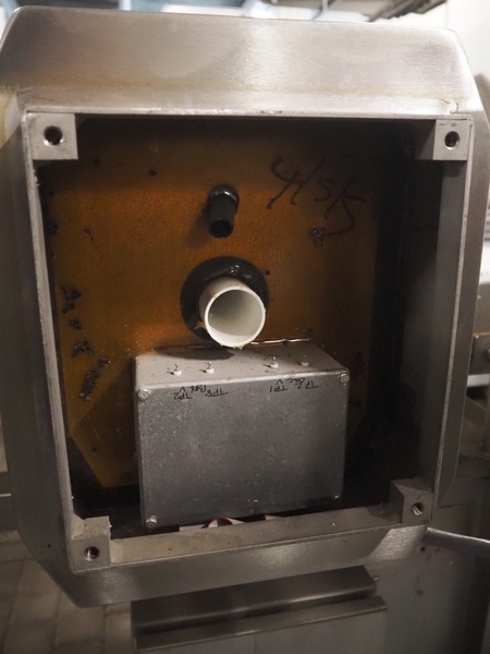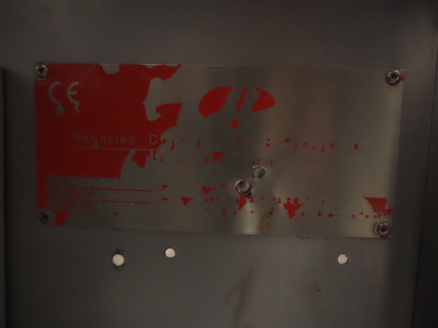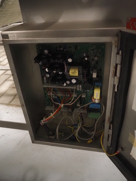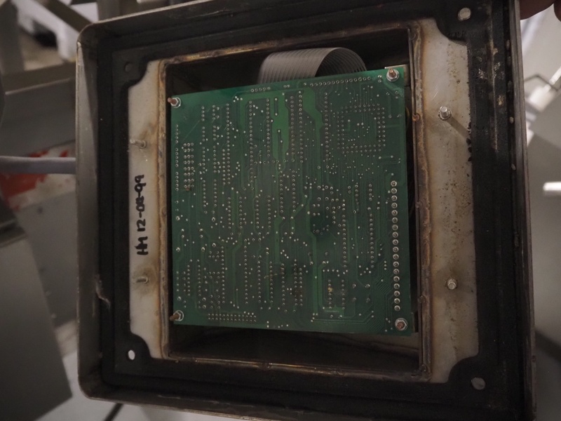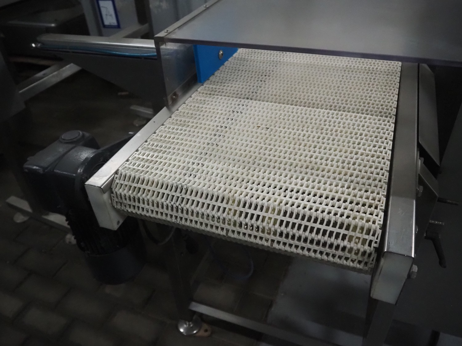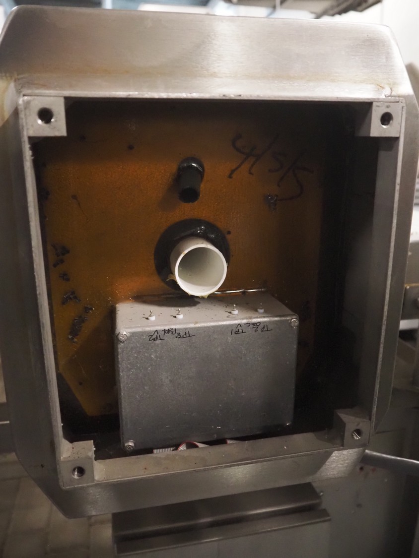 Lock Inspection Systems metal detector with rejector, type: 00006919, number: 99/0011, year of construction: APR-1999, plastic mesh belt, belt width: 400 mm, clearance: 460 mm x 70 mm, total dimensions: 1530 mm x 1430 mm x 1250 mm.