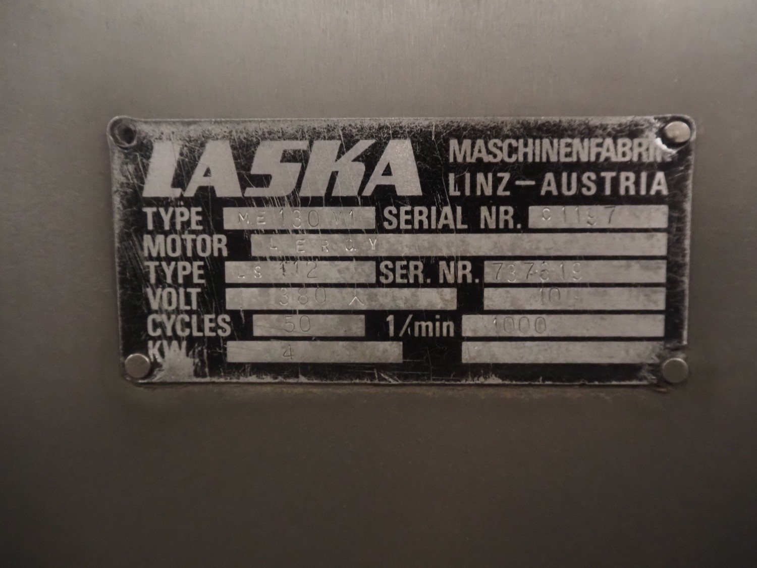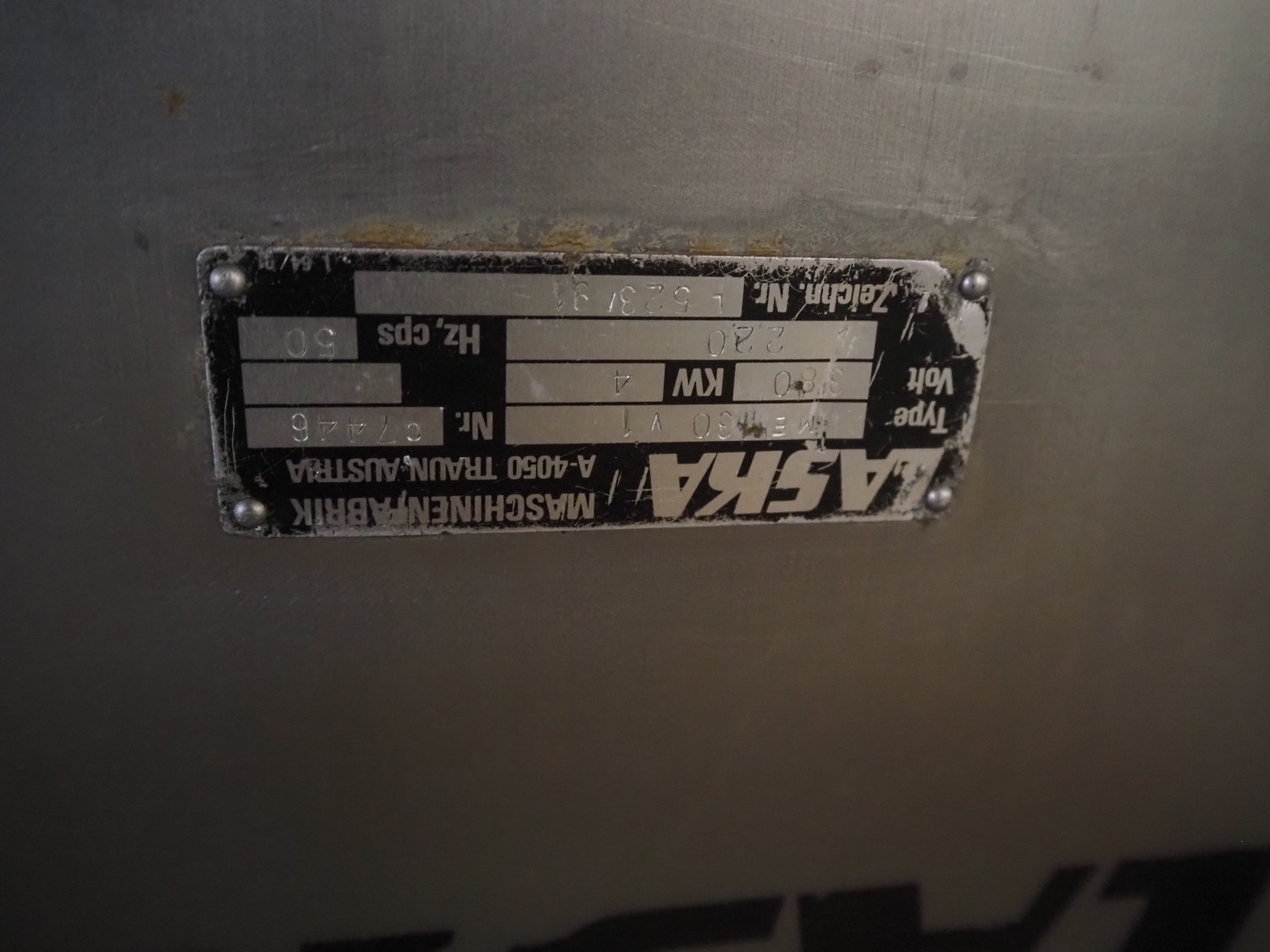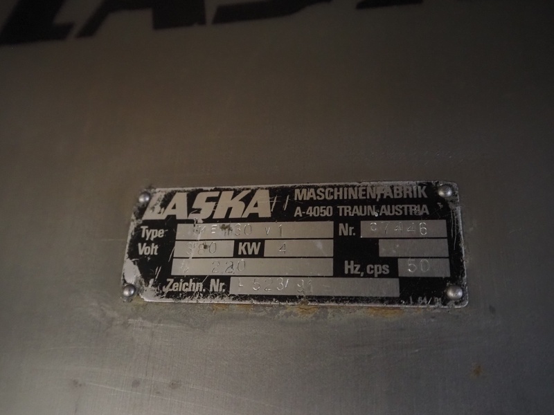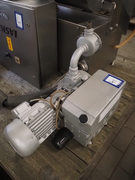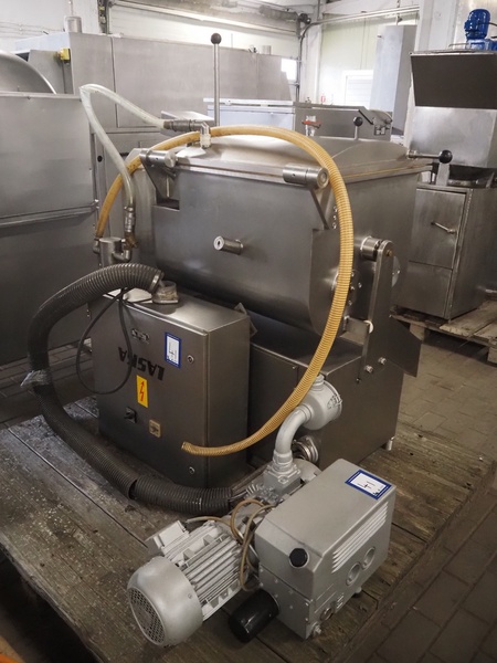 Laska Maschinenfabrik Z-arm vacuum mixer, type: ME 130 v1, serial number: c1197, 380 V, 50 Hz, 4 kW, volume: 130 liter, including vacuum pump and s/s switch cabinet, type: number: c7446, 380 V, 50 Hz, 4 kW, dimensions: 1250 mm x 900 mm x 1480 mm.