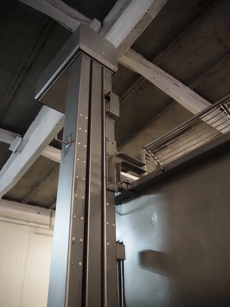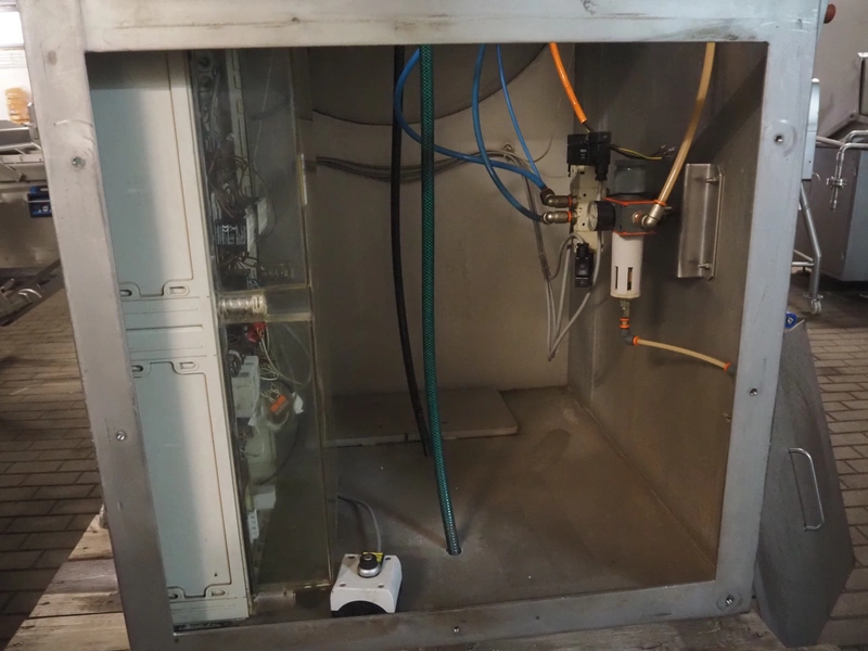 Thuringer Fleischereimaschinen GmbH spiral mixer with lifter for 200 liter meat bins, type: VM750, number: 010, year of construction: 2000, 400 V. 50 Hz, 27/63 A, 12.5 kW, volume: 750 liter, dimensions: 2850 mm x 1650 mm x 3150 mm.